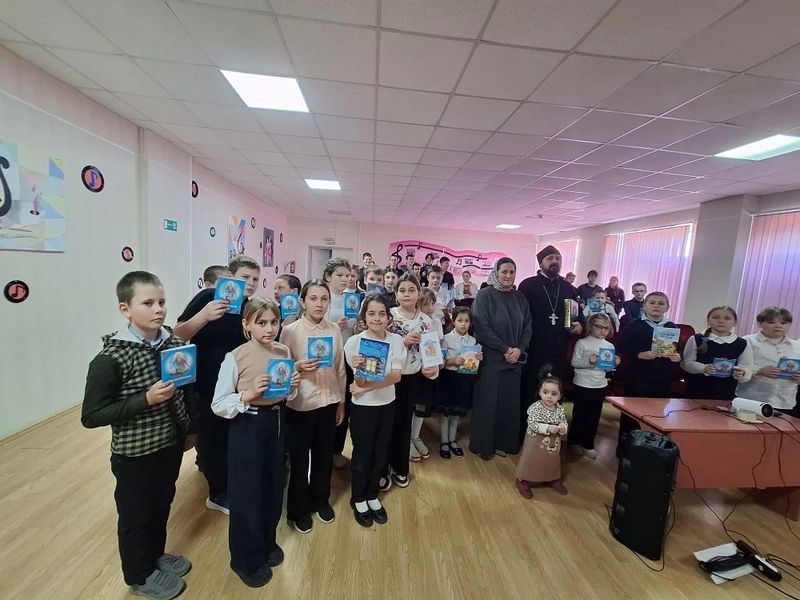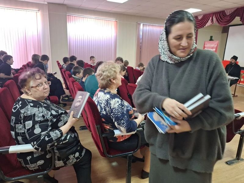 В конце встречи всем присутствующим были подарены православные книги и сладкие угощения.