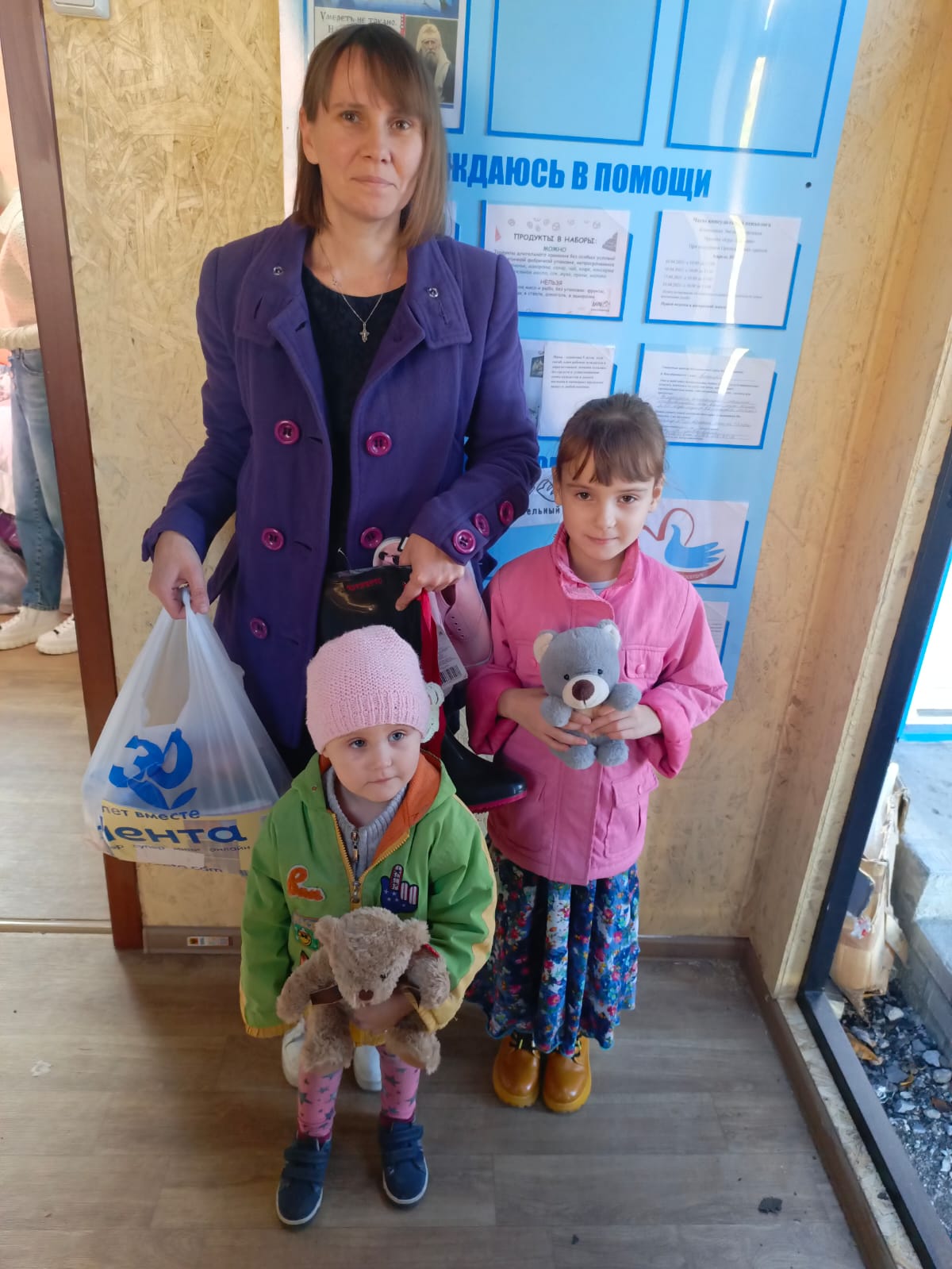 В октябре благополучателям гуманитарного центра «От сердца к сердцу» при Донском храме г. Новошахтинска от гипермаркета «Лента» была передана помощь: детские и взрослые вещи, обувь, игрушки и многое другое. Детки из семей беженцев и многодетных нуждающихся семей, семей с детьми инвалидами порадовались обновкам и игрушкам, а их мамы получили необходимое: носки, обувь, женские халаты.