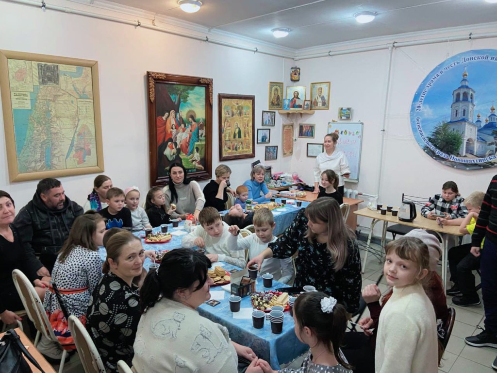 Мероприятие прошло по благословению протоиерея Романа Амплеева, настоятеля храма в честь Донской иконы Божией Матери города Новошахтинска, благочинного приходов Новошахтинского округа, председателя отдела по взаимоотношениям Церкви с обществом Шахтинский епархии. Праздничный концерт и чаепитие подготовили преподаватели воскресной школы Саханина Инна Викторовна, помощник благочинного, старшая сестра милосердия и преподаватель музыки воскресной школы Сахарова Светлана Владимировна. Дети подготовили трогательную программу праздника и сами накрыли стол для мам.