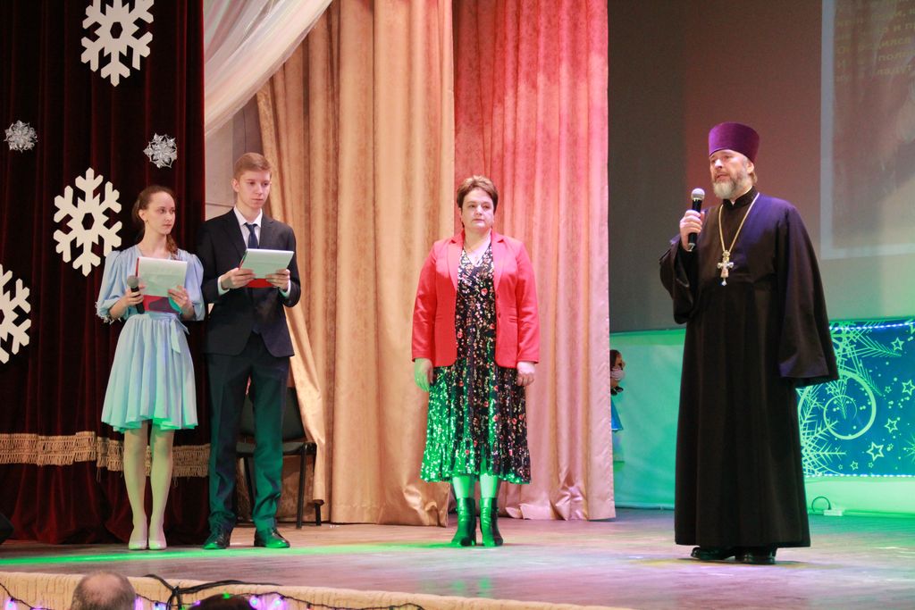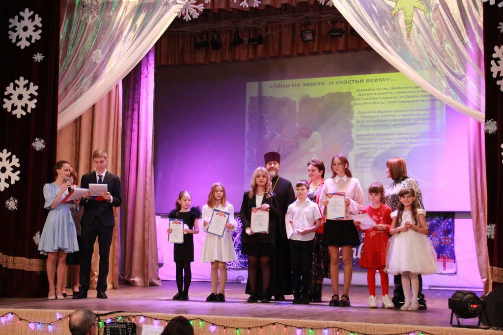 Накануне среди учащихся казачьих школ и детских садов, которых большинство в районе, был объявлен конкурс Рождественских рисунков и поделок. Комиссией конкурса были выявлены лучшие работы, авторов которых на сцене, после поздравления, отметили благочинный Багаевского округа протоиерей Александр Маштанов и заместитель главы Администрации района по социальным вопросам Калинина Оксана Александровна. Победителям были вручены грамоты и рождественские сувениры.