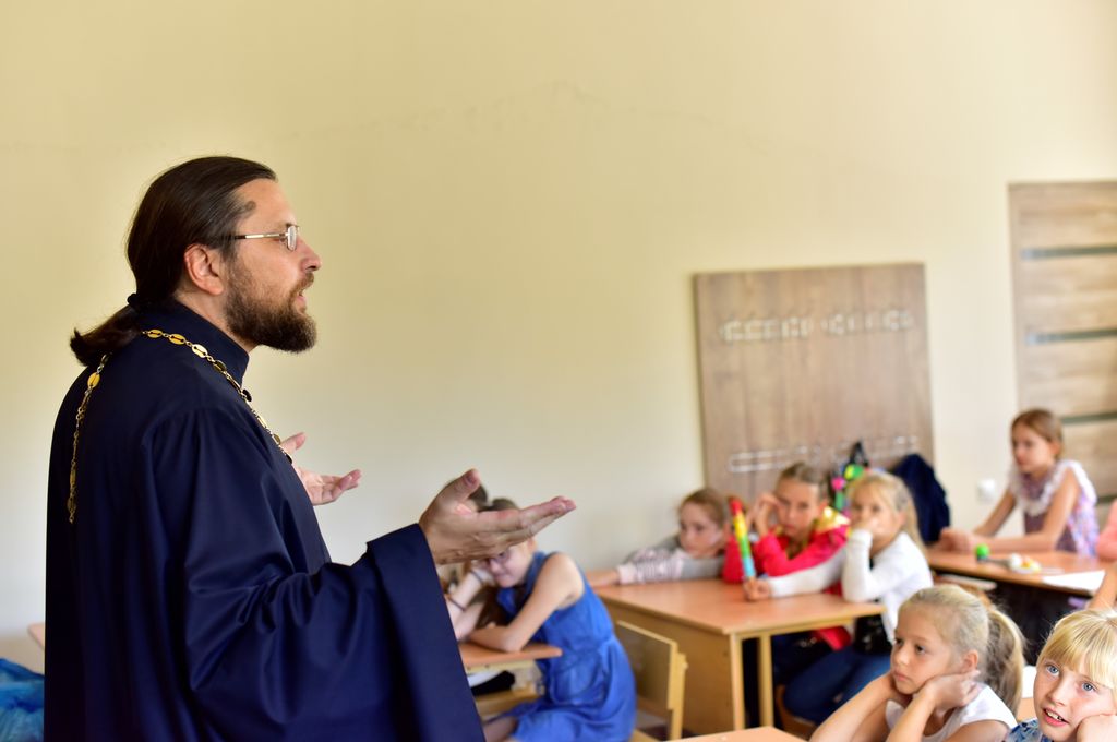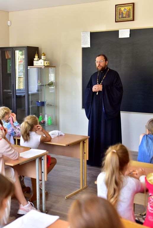 В воскресной школе храма Всех святых, в земле Русской просиявших, г. Каменск-Шахтинский протоиерей Виталий Крейдич провел очередной урок по Закону Божьему.