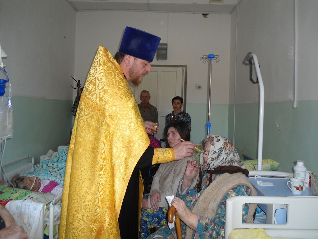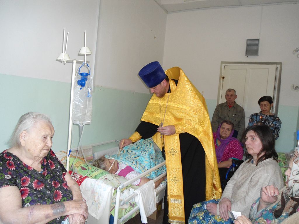 По просьбе пациентов сестринского отделения больницы города Каменск-Шахтинский настоятель храма Почаевской иконы Божией Матери протоиерей Вячеслав Лавлинский совершил таинство Соборования.
