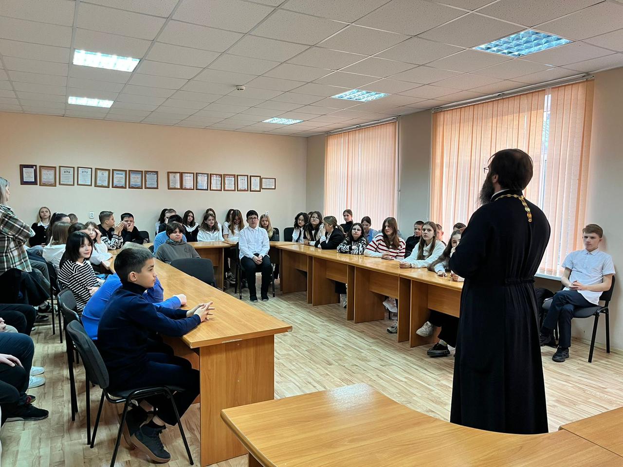 «Разговоры о важном». Иерей Александр Теличкин провел встречу с учащимися 7 классов лицея № 11 города Шахты