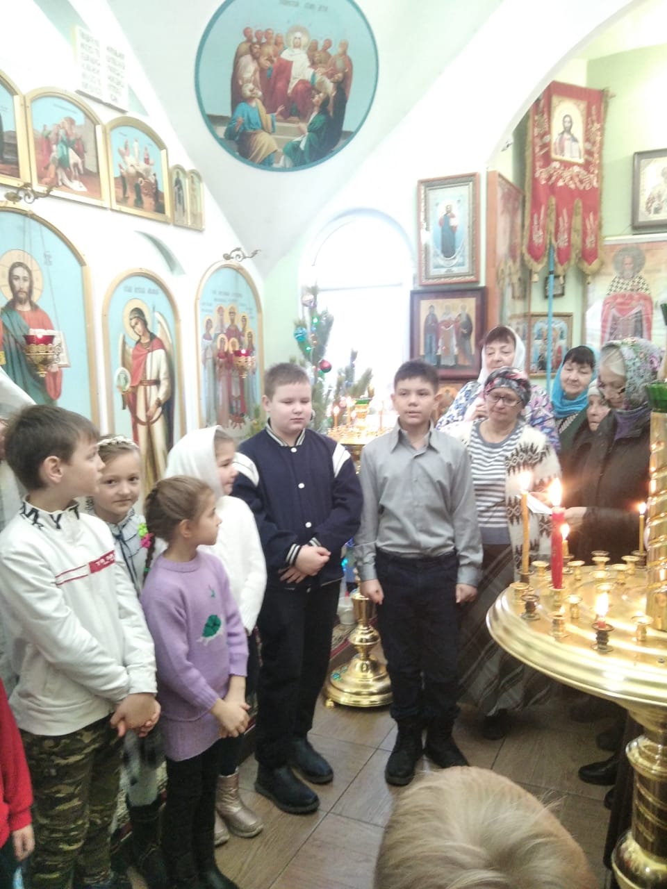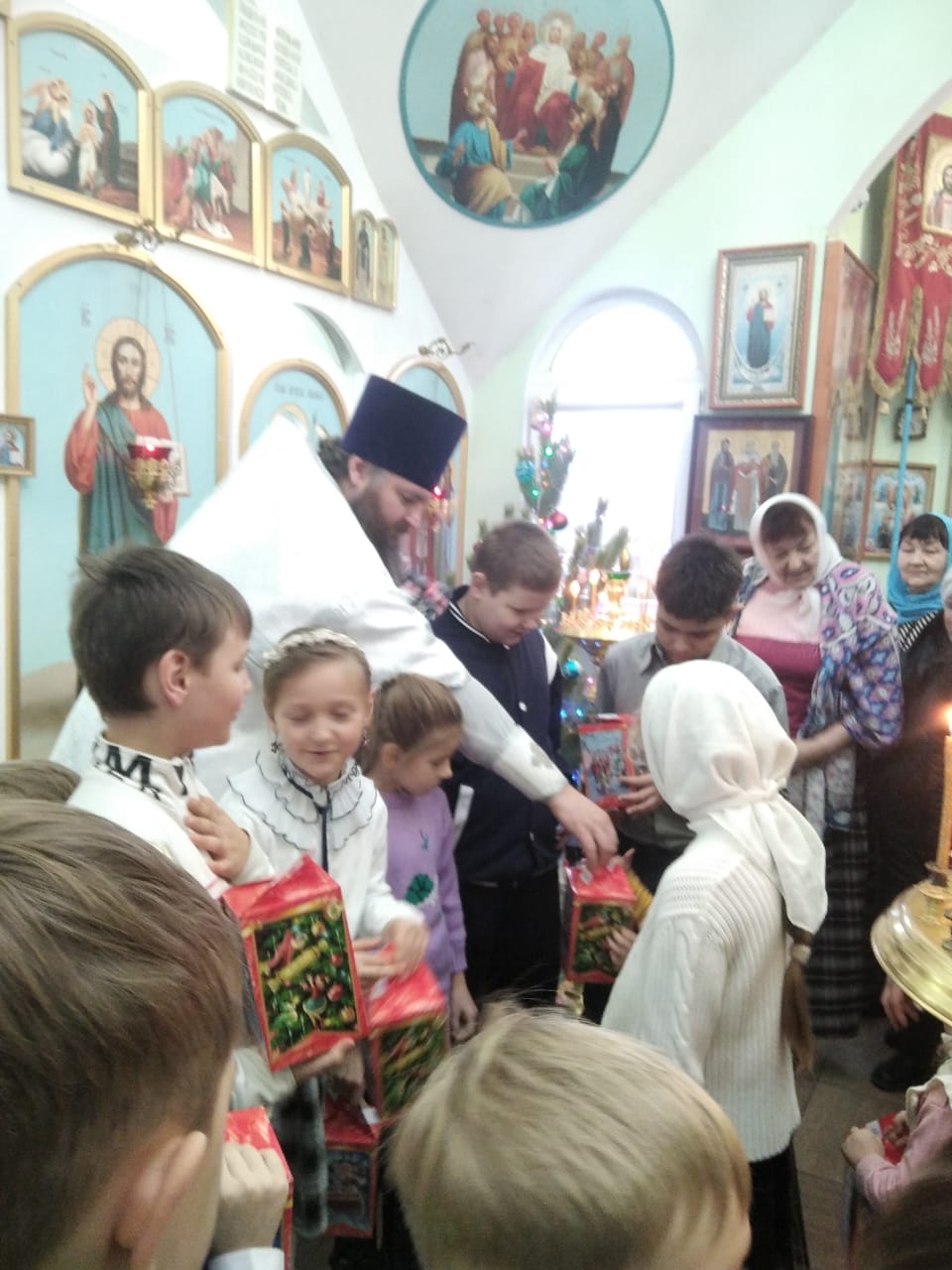 В конце богослужения всем прихожанам был представлен праздничный утренник. Дети читали стихи и пели колядки, которыми порадовали родителей и прихожан храма, прославляя родившегося Богомладенца. По окончании мероприятия настоятель храма иерей Алексий всем вручил сладкие подарки.