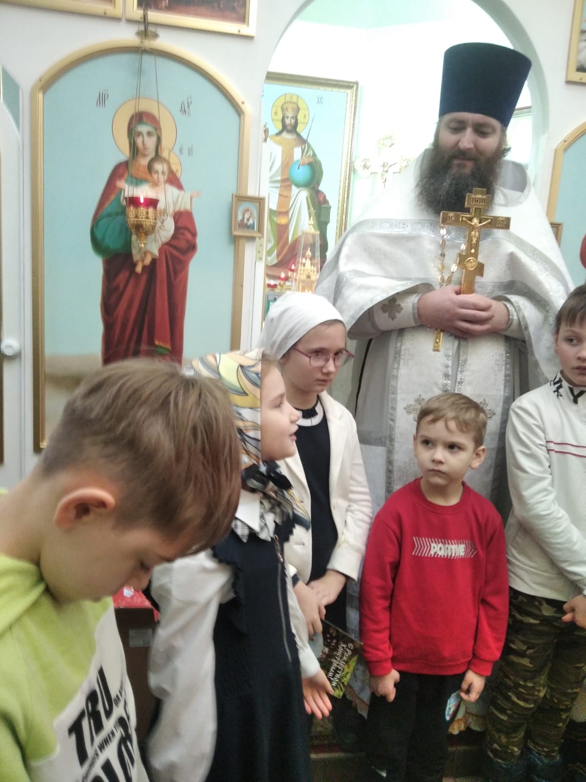 Воспитанники воскресной школы при храме святого праведного Иоанна Кронштадтского г. Шахты, помолились и причастились Святых Христовых Таинств в праздник Рождества Христова.