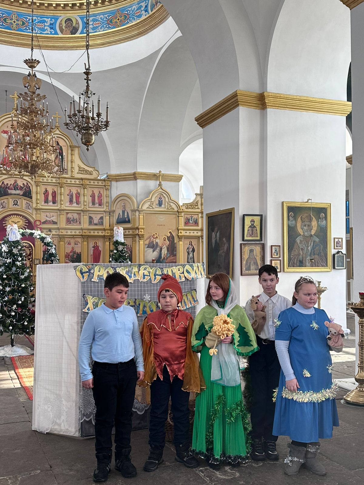 В Свято-Успенском храме ст. Калитвенской прошло торжественное мероприятие, посвященное родившемуся Богомладенцу. После воскресной Литургии воспитанники воскресной школы поздравили настоятеля, прихожан и родителей праздничным концертом. Сценки и колядки донесли до собравшихся благую весть о пришествии в мир Спасителя.