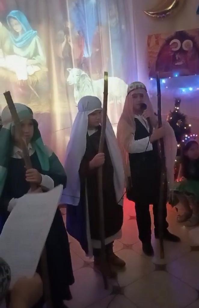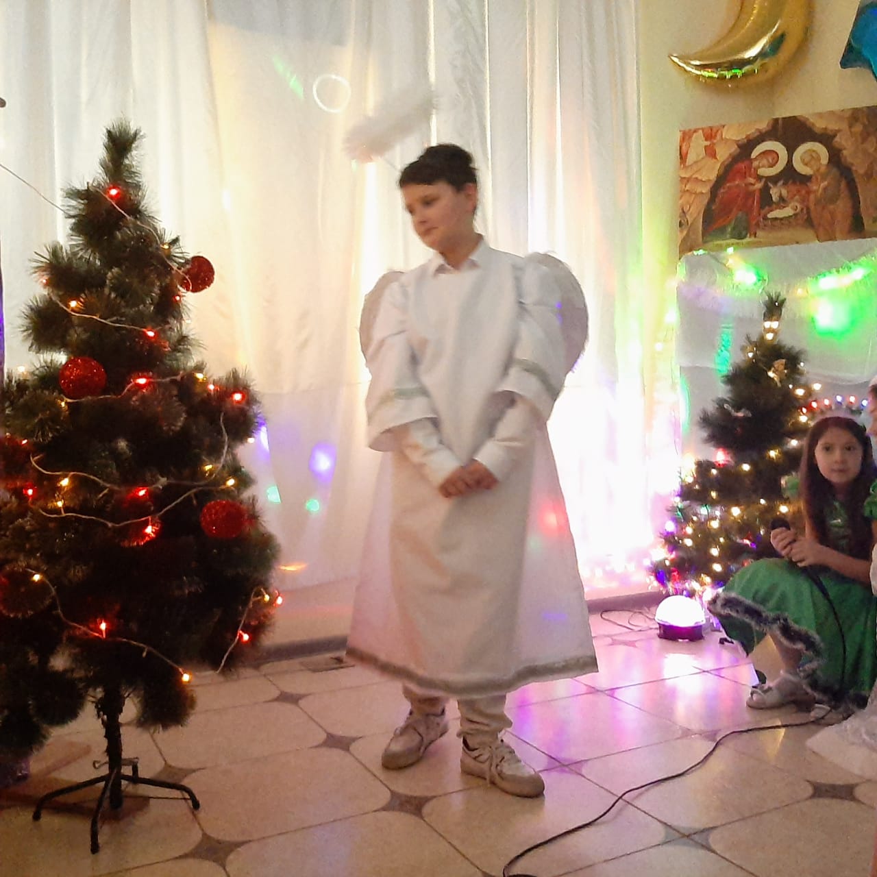 Много лет готовили на концерт кукольные спектакли. А в этом году дети захотели играть сами в костюмах. Пришлось всем потрудиться. Преподаватели Елена и Рита Бандурины подготовили сценарий. Родители костюмы сами сделали, а ребята выучили наизусть текст. С Божией помощью все получилось.