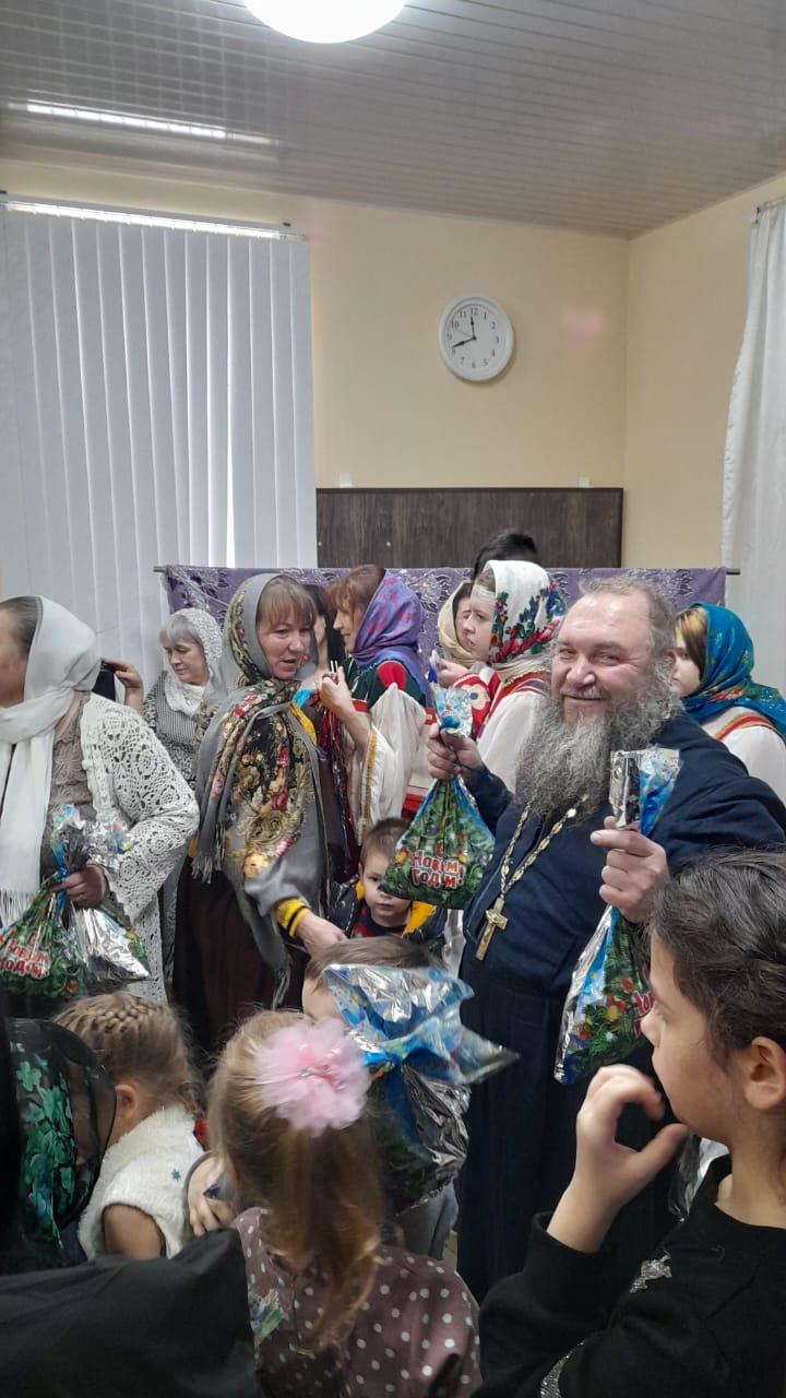 На праздничный концерт, по традиции, пришли дети из реабилитационного центра»Надежда». Поздравили прихожан участники ансамбля «Веретенце» (руководитель – певчая храма Ольга Радченко). А потом, как и бывает в Рождество, все участники концерта получили подарки.