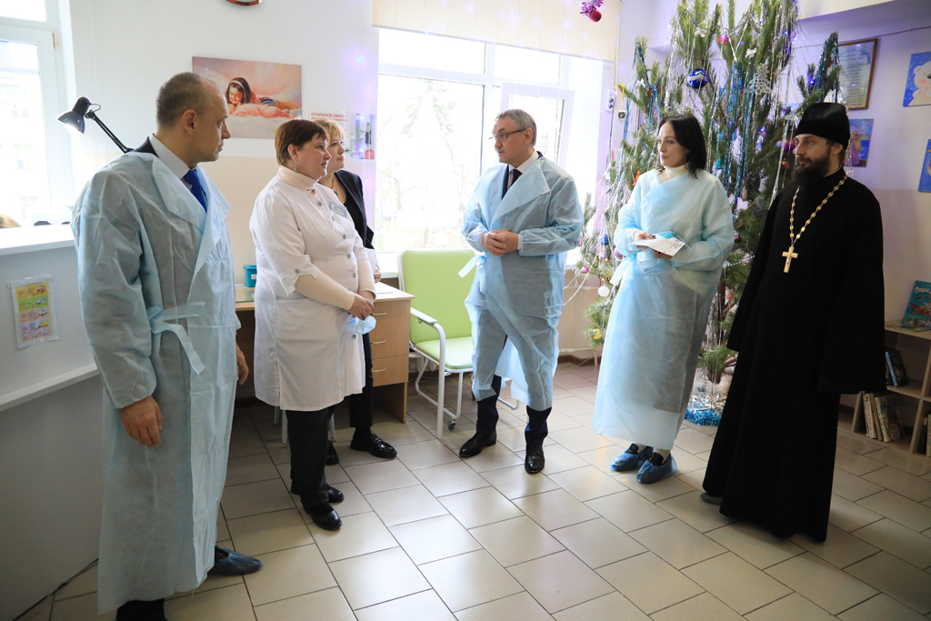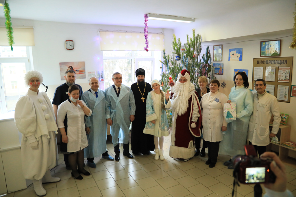 Детей, получающих медицинскую помощь в Детской городской больнице, навестили Дед Мороз и Снегурочка. Вместе с ними маленьких пациентов поздравили глава Администрации города Шахты Андрей Горцевской, председатель городской Думы – глава города Шахты Константин Корнеев и благочинный приходов Александровск-Грушевского округа протоиерей Сергий Яценко.
