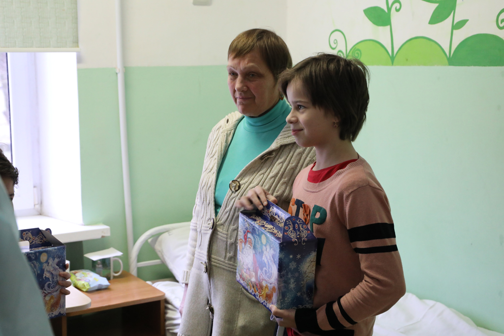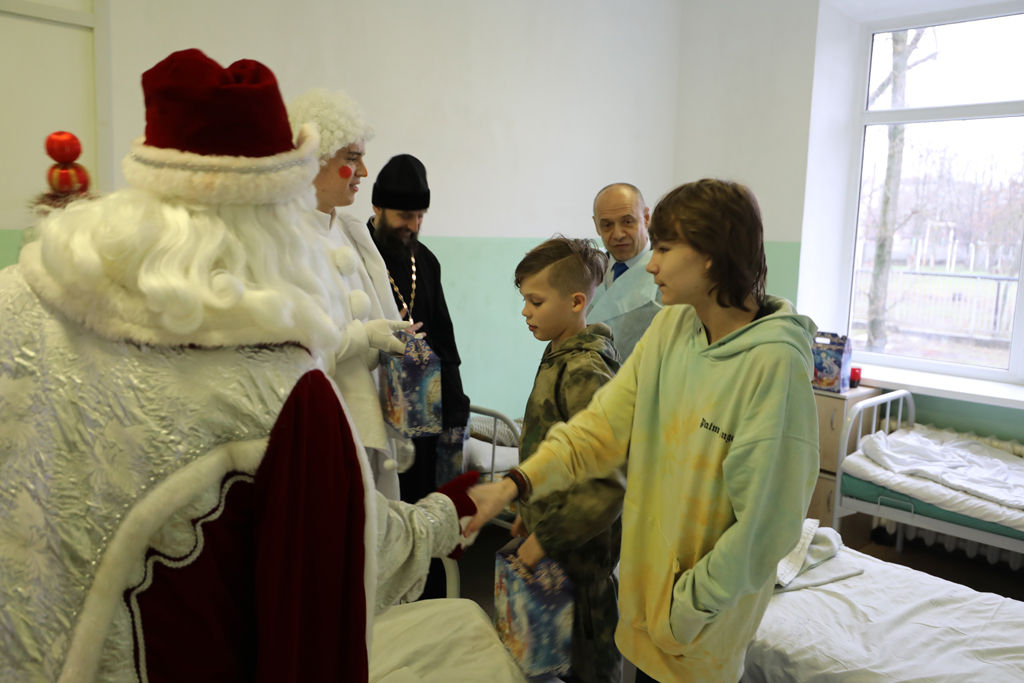 Гости вручили ребятам сладости и подарки с пожеланиями скорейшего выздоровления и добрых зимних каникул.