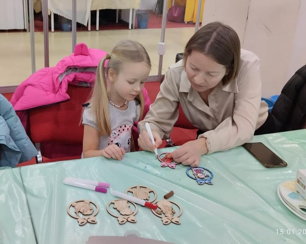 Для детей, принявших участие в мероприятии, с целью воспитания интереса к творчеству, аккуратности и старательности, член семейного клуба Элеонора Ивановская провела мастер-класс по росписи декоративных деревянных изделий.