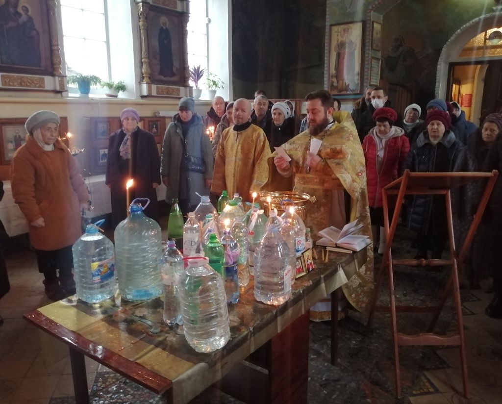 После водосвятного молебна состоялась Божественная литургия, которую совершил исполняющий обязанности благочинного приходов Миллеровского округа настоятель храма великомученика и целителя Пантелеимона г. Миллерово иеромонах Димитрий (Яроцкий). Ему сослужили настоятель храма апостола Андрея Первозванного иерей Симеон Есин и настоятель храма Покрова Пресвятой Богородицы сл. Никольской иерей Георгий Лукащук.