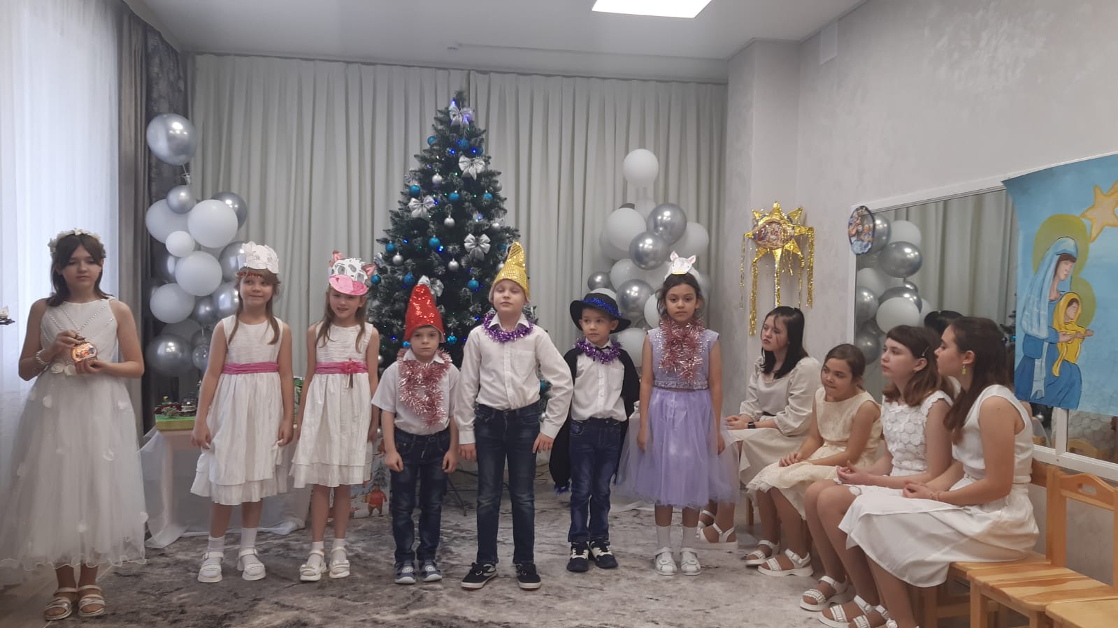 Праздничное театрализованное представление сопровождалось рождественскими стихами, песнями и конкурсами. Все дети, присутствующие на празднике, водили хороводы, участвовали в играх, отгадывали загадки и слушали рассказы, которые помогли раскрыть для ребят главный смысл великого праздника. На встрече прозвучали пожелания добра, любви, внимания и прощения всем и каждому.