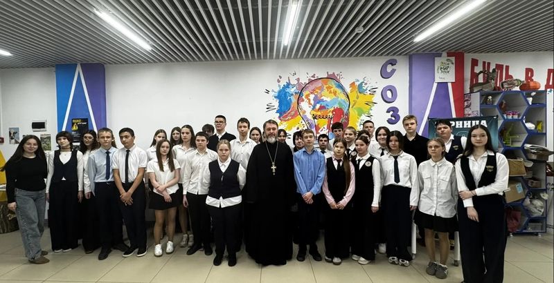 Согласно утверждённому плану взаимодействия духовенства Багаевского благочиния и молодёжного центра ММЦ «Вектор роста» на 2025–2026 годы, состоялась очередная встреча учащихся 7–8 классов БСШ №1, БСШ №2 и БСШ №3 с настоятелем храма святителя Николая станицы Багаевской протоиереем Александром Маштановым.