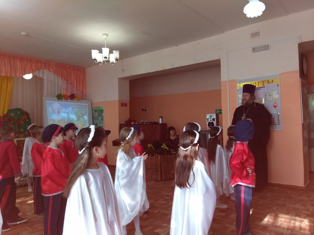 В честь праздника Покрова Пресвятой Богородицы в казачьем детском саду ст. Обливской проведен утренник. Протоиерей Александр Бралгин поздравил казачат
