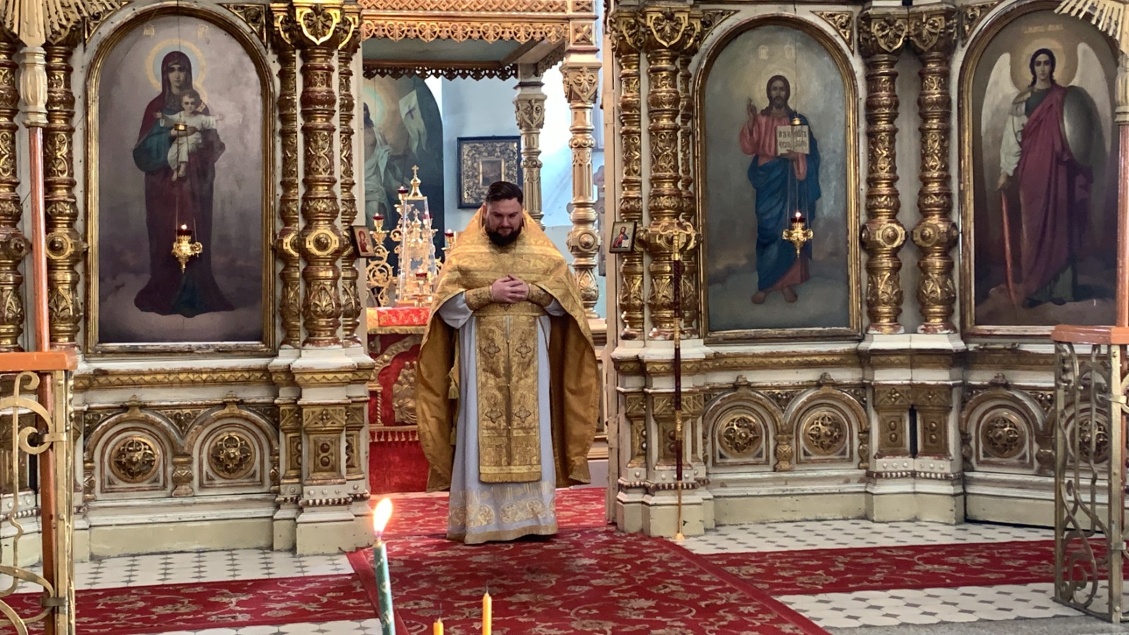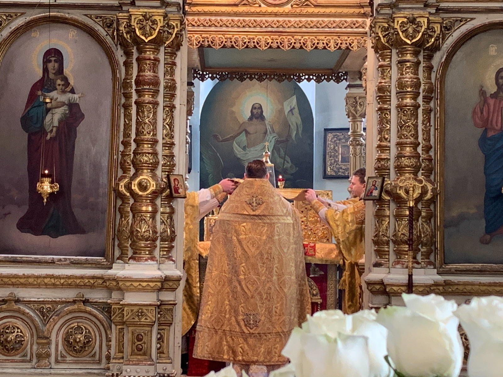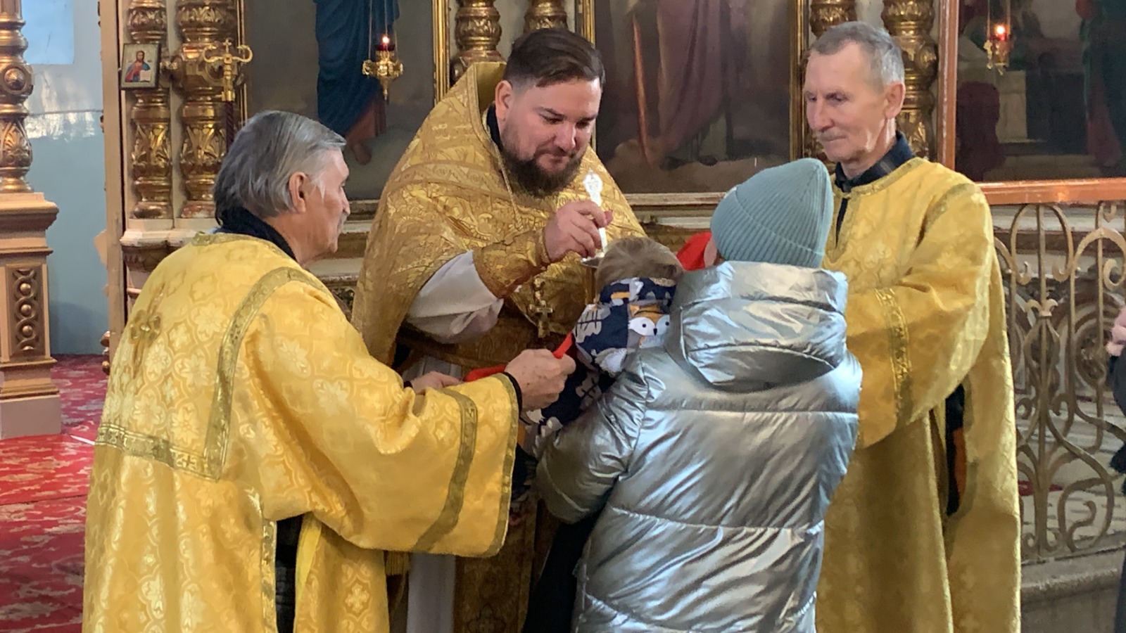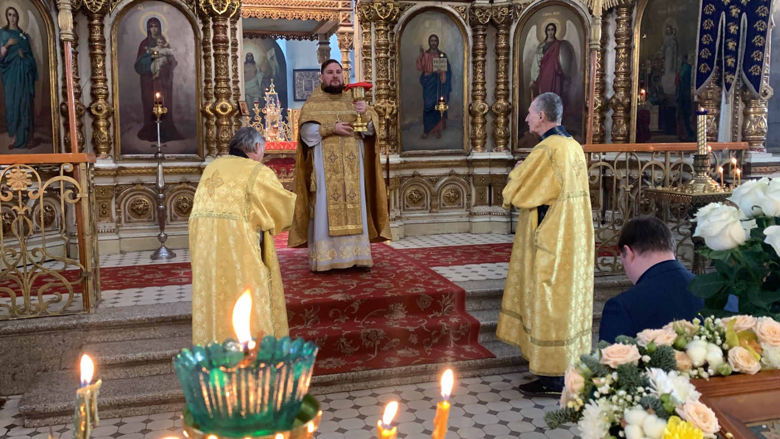 За праздничным богослужением молилось духовенство шахтинской епархии: настоятель храма Успения Пресвятой Богородицы протоиерей Глеб Гладышев; настоятель храмов Державной иконы Божией Матери г. Донецка, Святителя Спиридона Тримифунтского г. Донецка, Новомучеников и исповедников Церкви Русской пос. Тарасовский иерей Владимир Татаркин; иеромонах Серафим, клирик прихода Сергия Радонежского, х. Старая Станица; настоятель храма Успения Пресвятой Богородицы ст. Калитвенской, иерей Игорь Лосев; настоятель храма блаженной Матроны Московской г. Донецка протоиерей Александр Барановский; настоятель храма в честь пр. Анны Кашинской микр. Заводской, г. Каменск-Шахтиский, иерей Олег Выборов.