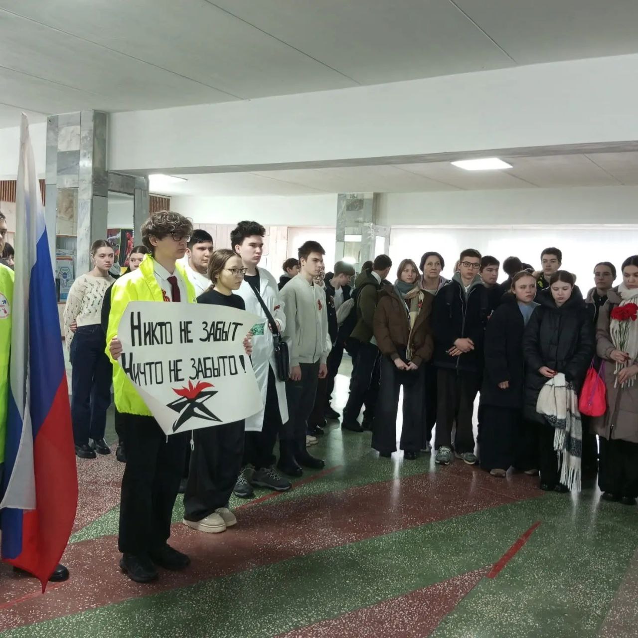 Активное участие в митинге приняли студенческие волонтерские отряды «Добро» и «Патриот», а также активисты первичной организации «Молодая гвардия Единой России». В рамках мероприятия они провели всероссийские патриотические акции: «Георгиевская лента», «Вахта памяти» и «Свеча памяти».