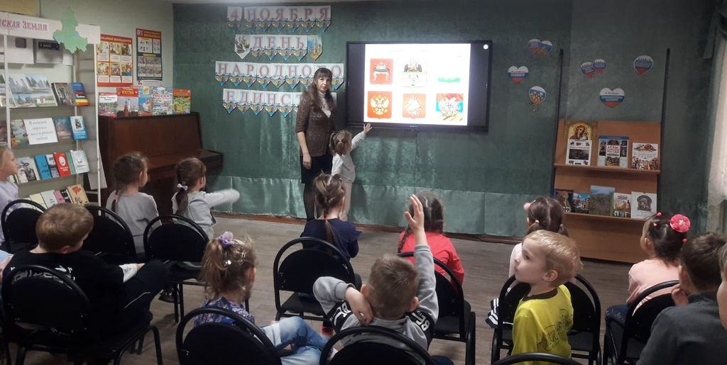 В заключительной части часа дети приняли участие в викторине «Моя родина – Россия» и познакомились с библиографическим обзором «Мы разные, но мы едины».