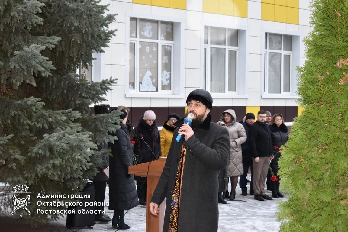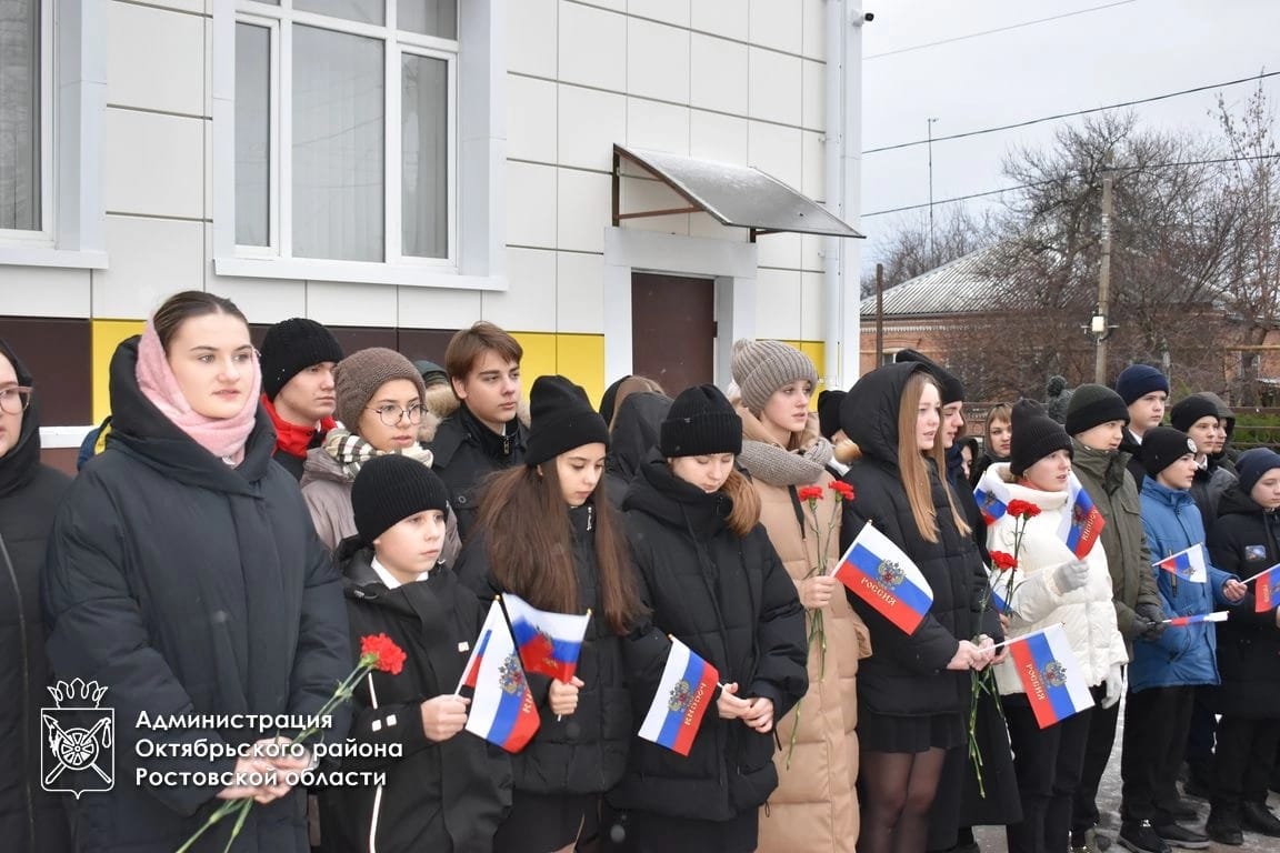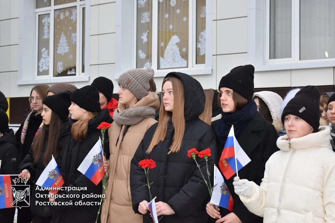 В мероприятии приняли участие глава Администрации Октябрьского района Людмила Овчиева, заместитель главы Администрации района Лариса Бутова, глава Администрации Каменоломненского поселения Максим Симисенко, благочинный Нижнедонского округа протоиерей Сергий Яценко, заведующая сектором по организационной и правовой работе Собрания депутатов Октябрьского района Наталья Скорая, председатель Совета ветеранов войны, труда (пенсионеров), вооруженных сил и правоохранительных органов Юрий Точеный, директор школы, учителя, ученики, участники СВО, председатель первичной организации ветеранов-участников специальной военной операции Вячеслав Черный.