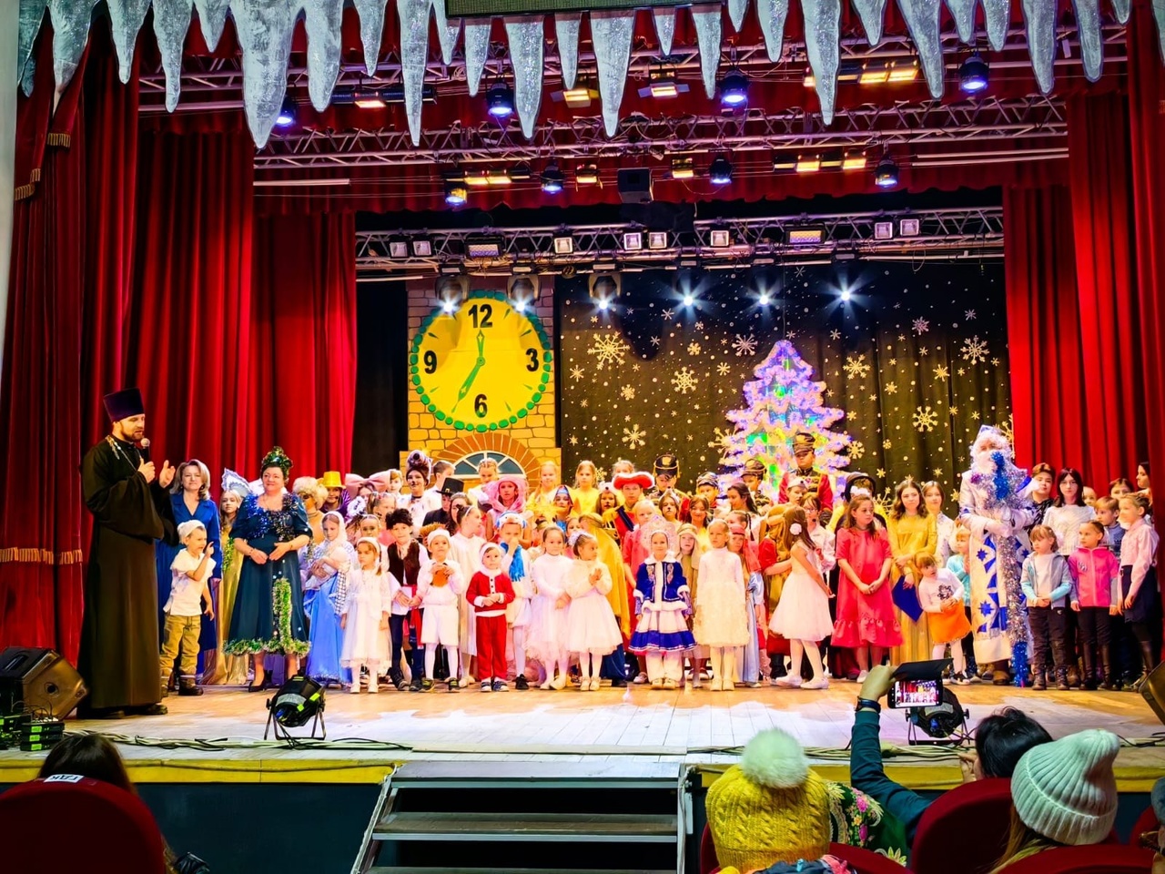 Настоятель Свято-Пантелеимоновского прихода г. Гуково иерей Леонид Зацепилин благословил и поздравил собравшихся с праздниками Рождества Христова и Крещения Господня. И представление началось.Восемьдесят красивых, нарядных, а главное талантливых воспитанников Учебного театра «Воскресение» самозабвенно играли на сцене замечательную историю об оживших в Рождественскую ночь игрушках, которые смело и отважно противостояли злу и предательству.