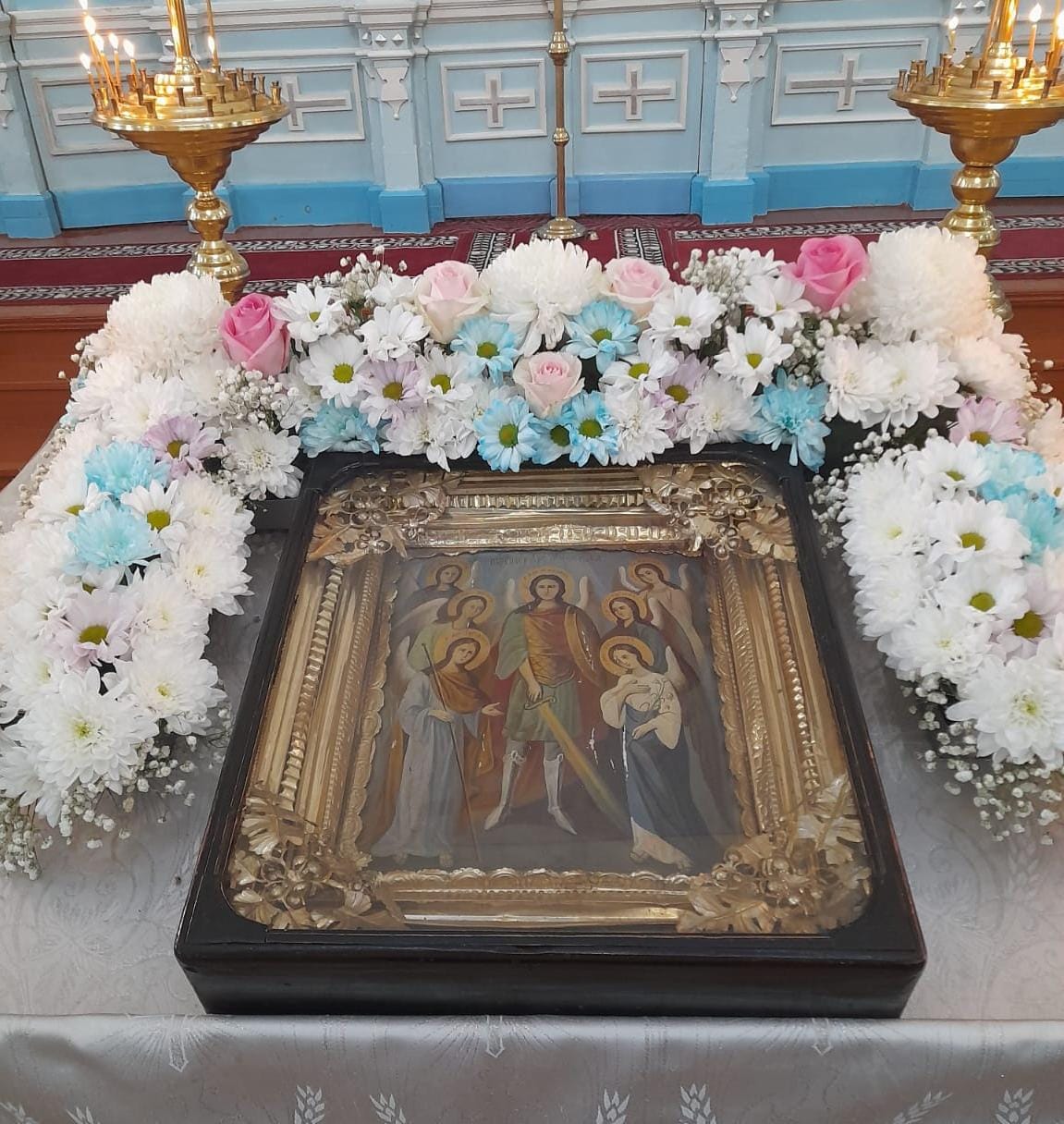 В день, когда Церковь чтит память Собора Архистратига Михаила и прочих Небесных Сил бесплотных, престольный праздник отметил храм в честь Архангела Михаила пос. Каменоломни Октябрьского района.