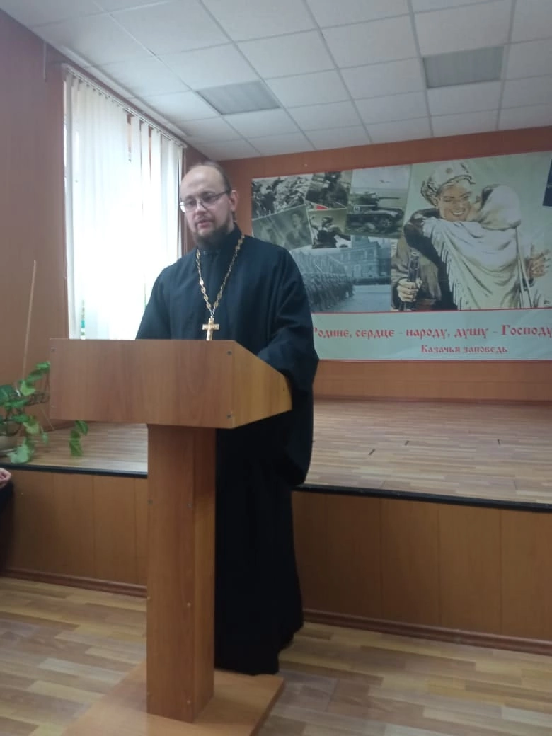 В работе секции приняли участие студенты, преподаватели, завучи и гость мероприятия – настоятель храма Архангела Михаила сл. Позднеевки иерей Александр Тимошенко. Он обратился с приветственным словом и дал наставление кадетам любить Бога и ближних, свято чтить православие – веру своих предков донских казаков, стараться принести пользу своей Родине.