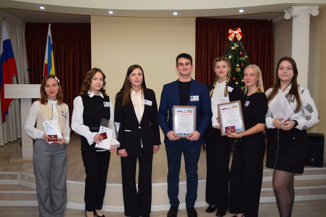 Ю.В. Ушанев наградил благодарственными письмами Новошахтинской городской Думы активистов Молодежного парламента предыдущего созыва и вручил удостоверения членам Молодежного парламента 10 созыва.