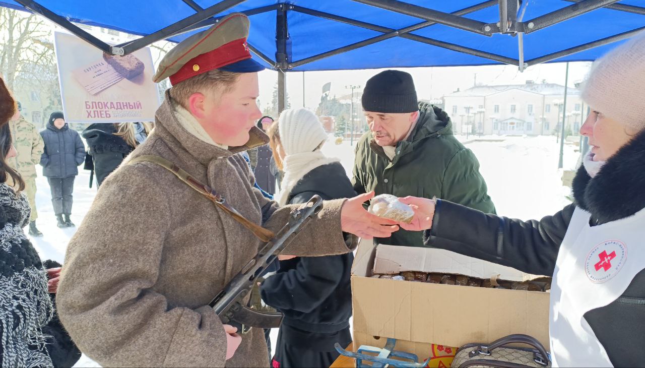 В посёлке Каменоломни Октябрьского района на площади имени 50-летия Победы состоялась традиционная патриотическая акция памяти «Блокадный хлеб», приуроченная к 82-й годовщине полного освобождения Ленинграда от фашистской блокады.