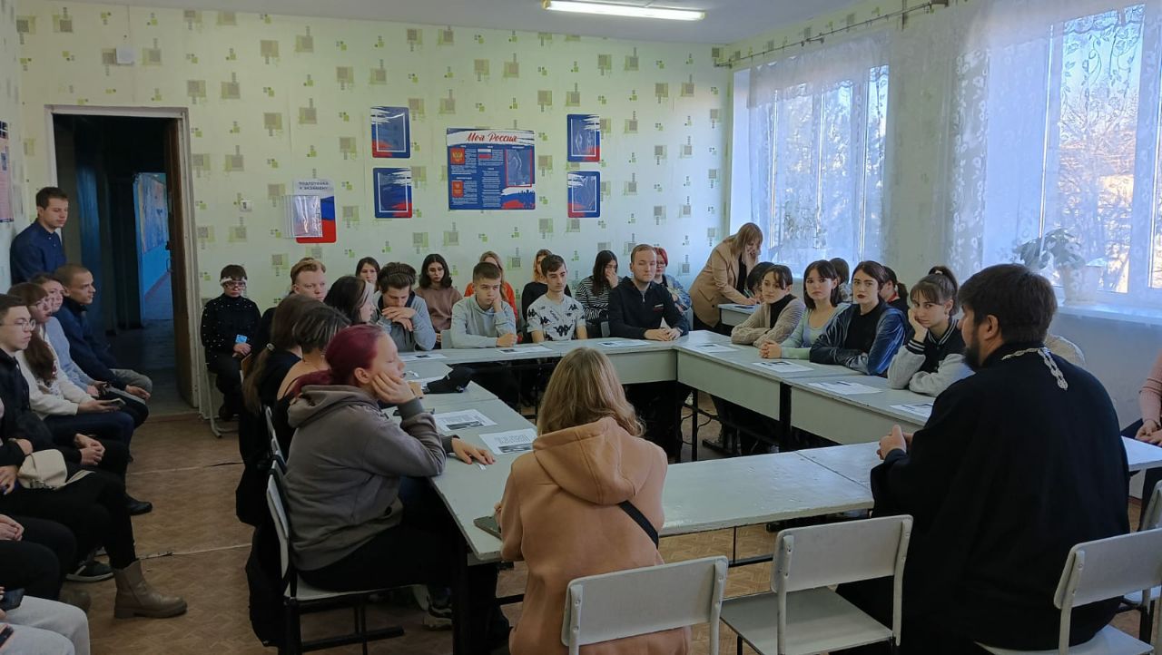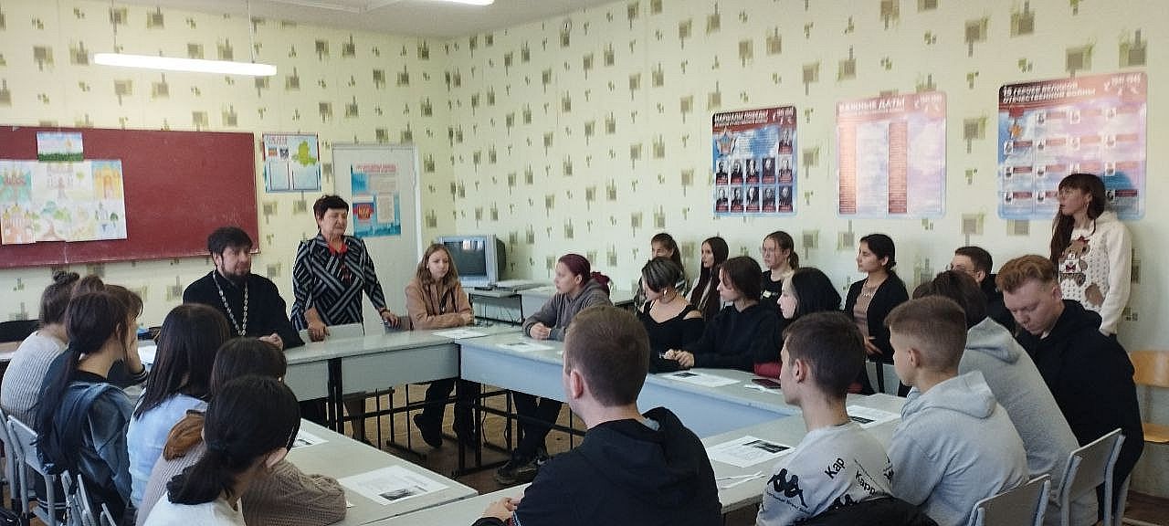 В рамках XXVIII Димитриевских образовательных чтений в ГБПОУ РО ПУ№50 прошла встреча в формате круглого стола с настоятелем храма Матроны Московской протоиереем Александром. Целью данной встречи было духовно-нравственное и гражданско-патриотическое воспитание.