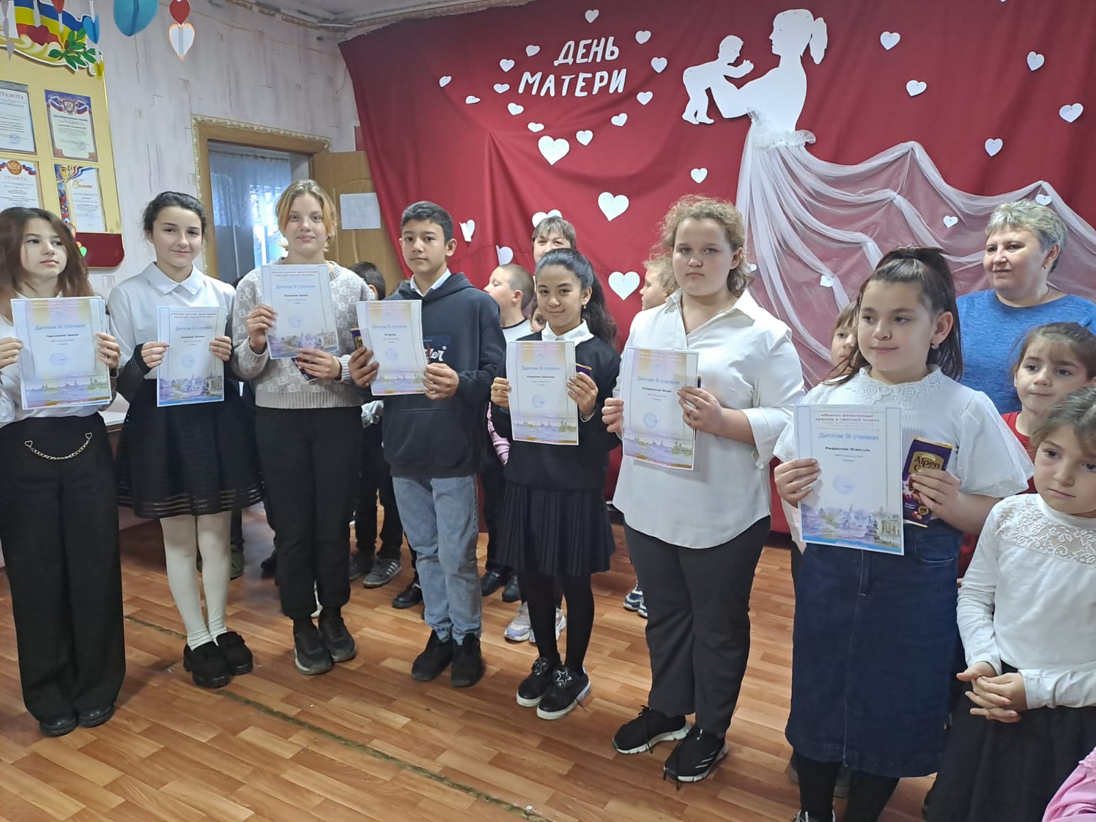 Каждый победитель получил вместе с дипломом сладкий приз.