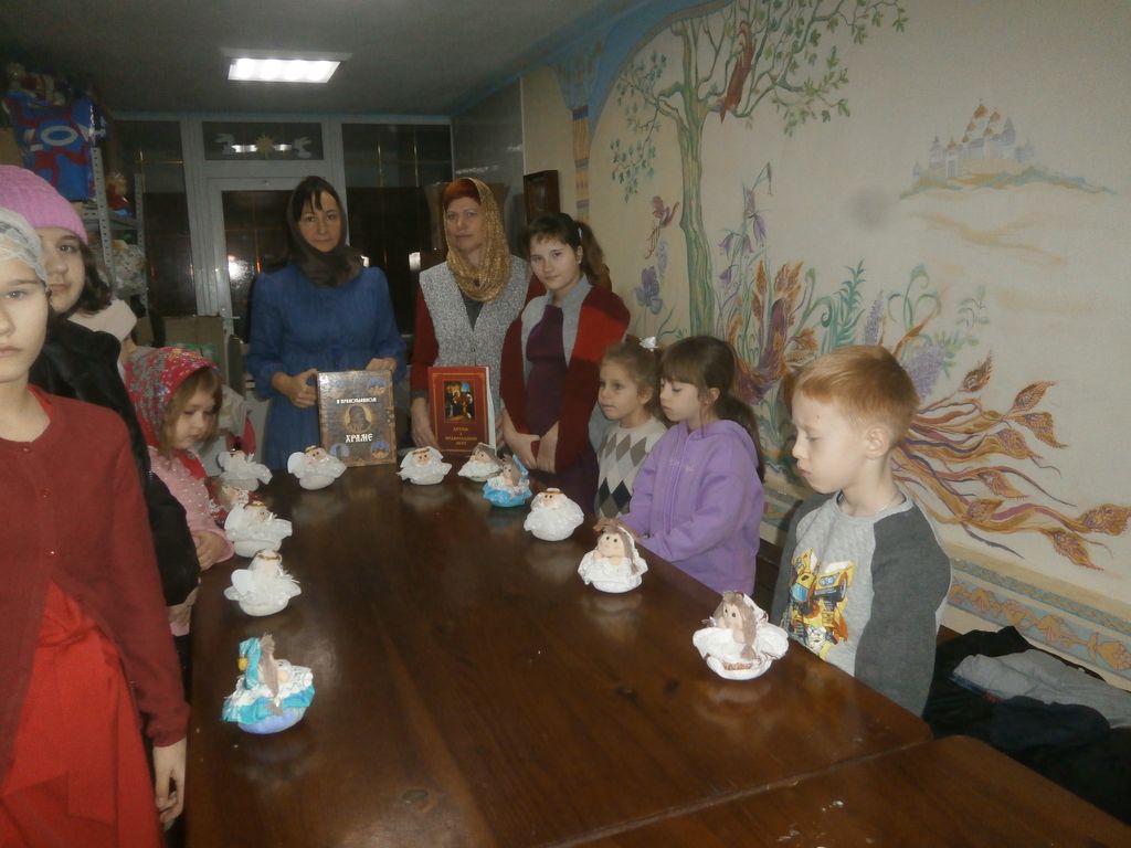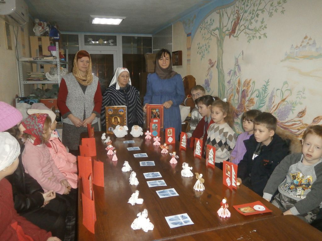Провела православный час помощник по религиозному образованию и катехизации Фартанова Р.И. Младшая и средняя группы приняли участие в творческом часе по изготовлению Рождественского сувенира и открыток для воинов-защитников вместе с преподавателями Давидовой Н.Г. и Живенко И.Ю. Изготовленное детскими руками, все передали сестринскому отделу для вручения солдатам.