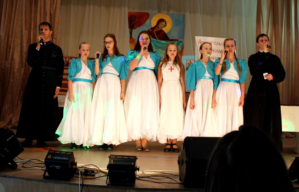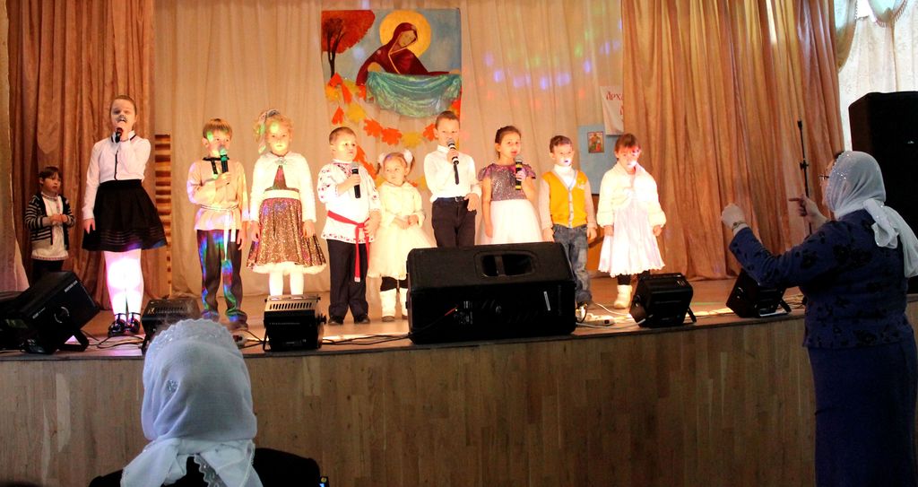 Младшие группы Учебного театра показали театрализации «Самая лучшая мама» и «На скамейке возле дома», которые были восторженно восприняты благодарными зрителями. Также было много песен, стихов. Зрители высоко оценили танец в исполнении самых маленьких танцоров из детского сада «Ромашка» и частушки от подготовительного класса воскресной школы.