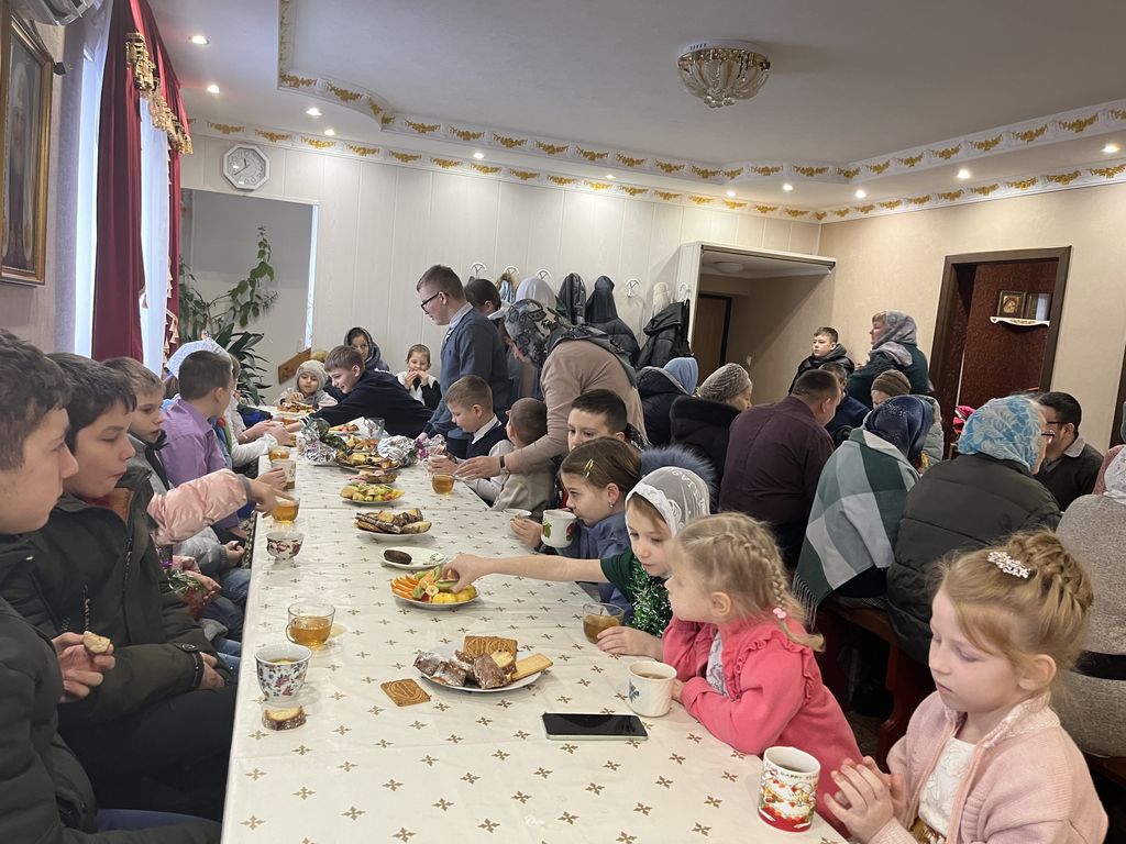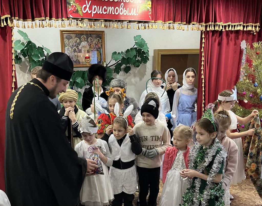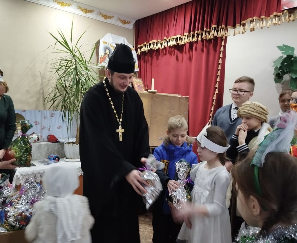 По завершении праздничного концерта и поздравлений отец Александр поблагодарил всех детей за выступления и подарил всем подарки. По традиции все дети были приглашены к сладкому столу.