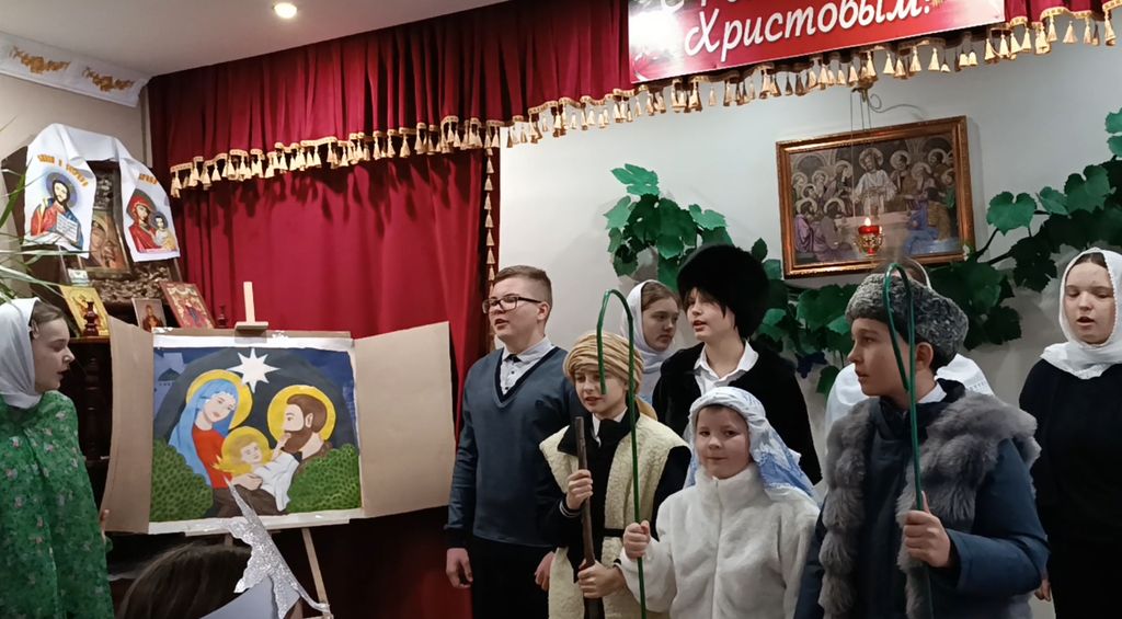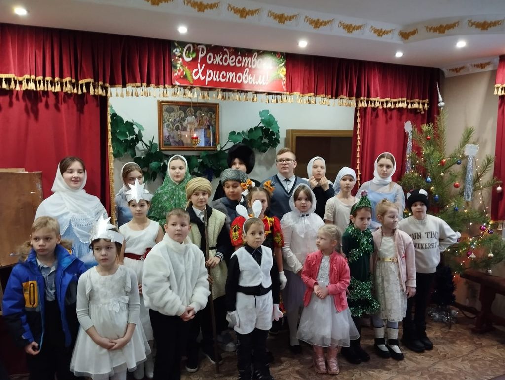 По благословению настоятеля храма иерея Александра Левчика, трудами преподавателей в актовом зале храмового здания ученики воскресной школы поздравили своих родителей и прихожан с Рождеством Христовым.
