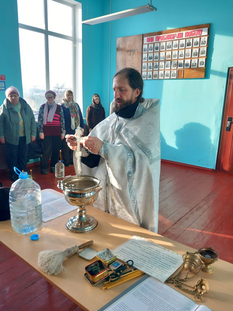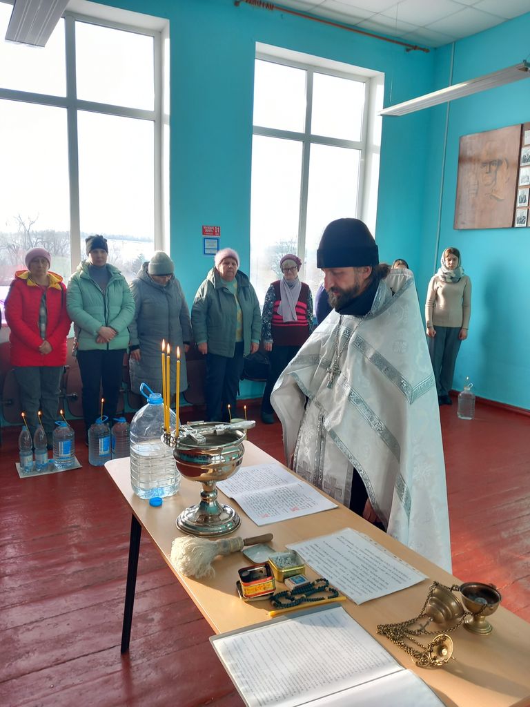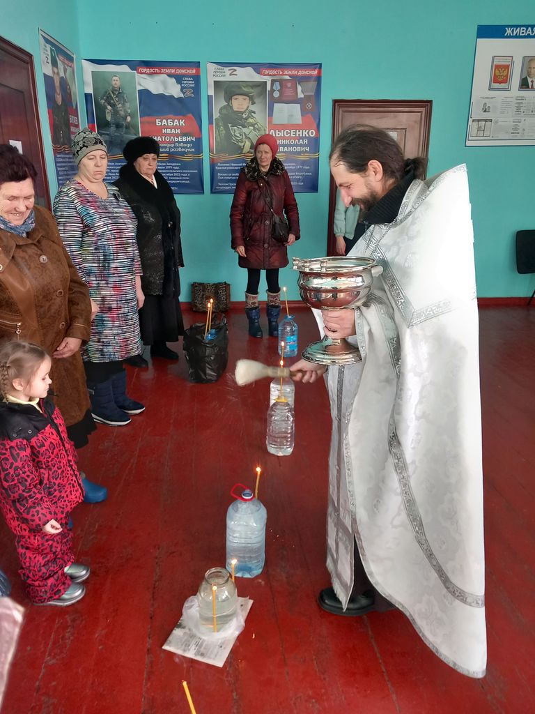 В Крещенский сочельник настоятель храма святой равноапостольной княгини Ольги п. Горный иеромонах Арсений (Алимов) совершил чин Великого освящения воды в хуторе Табунщиково. Священник поздравил верующих с праздником.