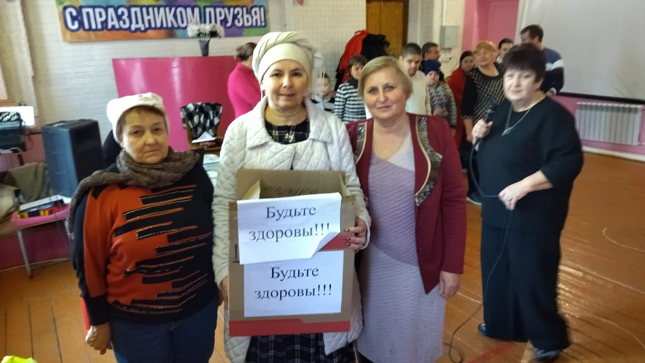 Веселые эстафеты, дискотека, чаепитие, все это помогло поднять настроение и создало атмосферу добра, милосердия и братской любви. Инна Викторовна передала подарки, которые для этого праздника подготовили новошахтинское отделение партия Единая Россия члены Опоры России, депутаты городской думы Дерюгина Н. С. и Стукалов И., сестры милосердия и прихожане Донского храма. Саханина И.В. сказала теплые приветственные слова, поблагодарила за труд в составе клуба «Мироносицы» и пожелала не сдаваться перед лицом житейских невзгод, быть «стойкими, оловянными солдатиками» и почаще вспоминать, что Бог любит каждого из нас и, через все тернии, ведет ко спасению Бессмертной души.