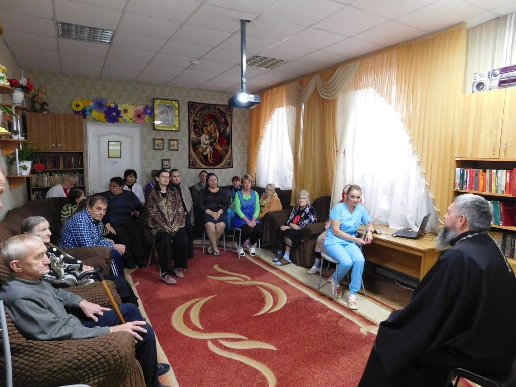 С пастырским визитом настоятель храма преподобномученицы Елисаветы иерей Георгий Русинов посетил социально-реабилитационное отделение №2. В ходе визита состоялась беседа с персоналом и подопечными отделения, на которой священник поздравил всех с праздником и ответил на многие вопросы.
