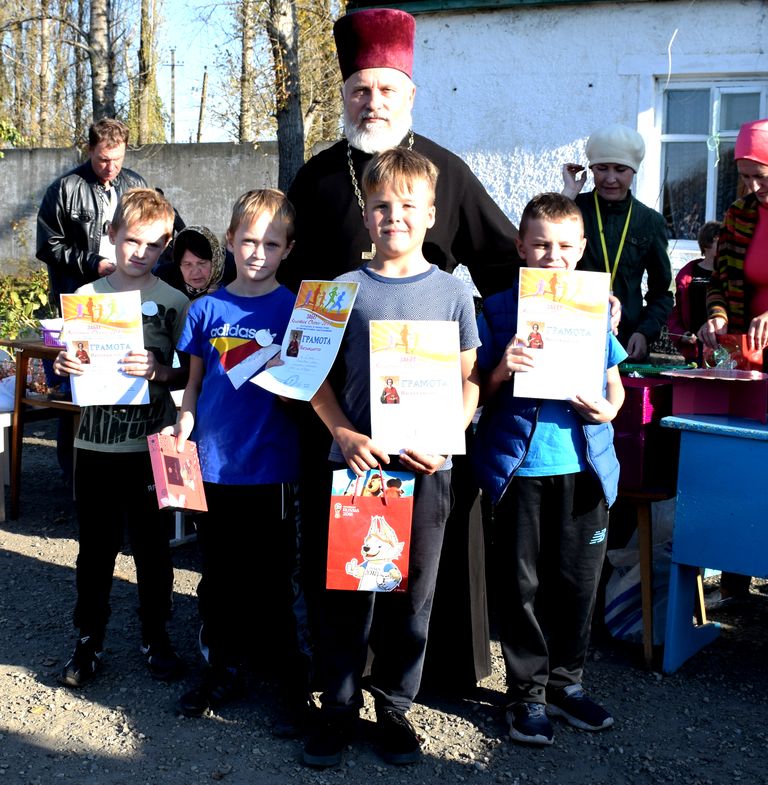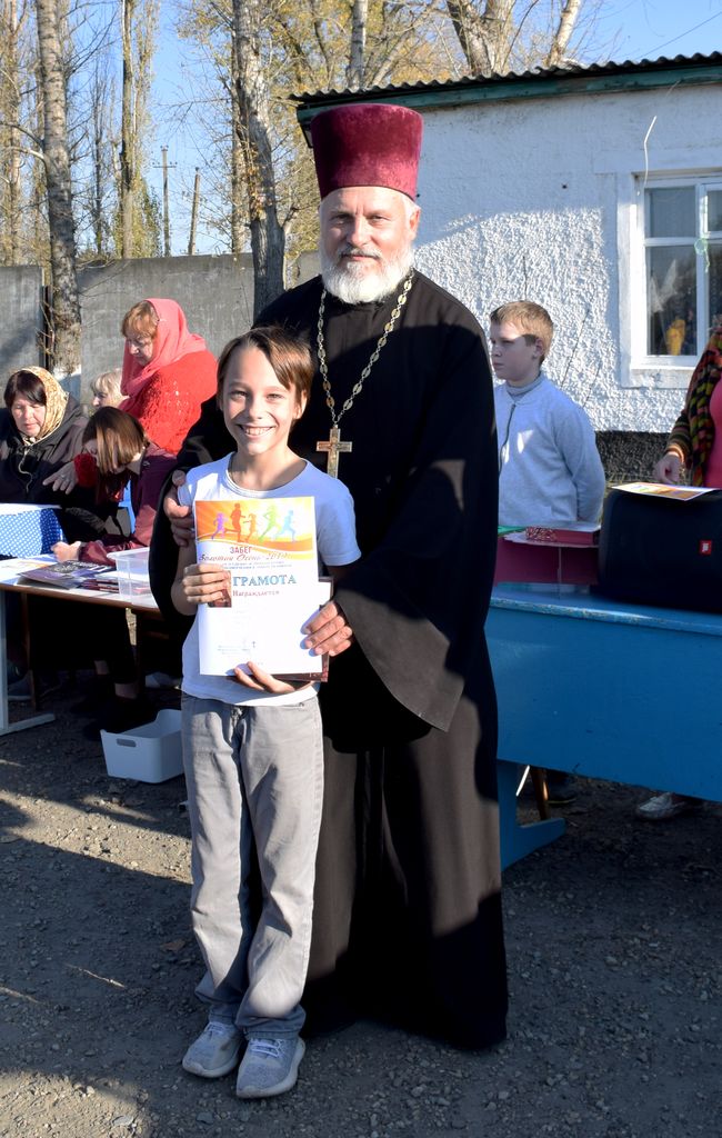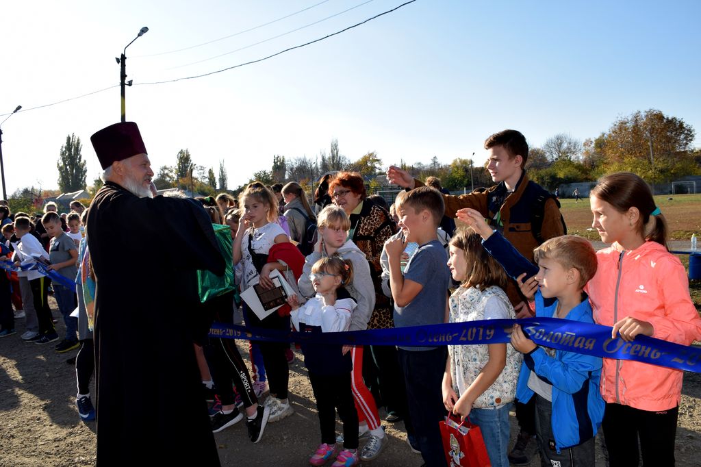 Воспитанники воскресной школы при храме великомученика Пантелеимона г. Гуково и иерей Олег Бурлаков приняли участие в пробеге «Золотая осень 2019»