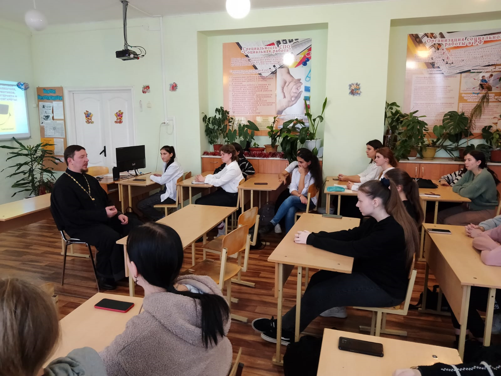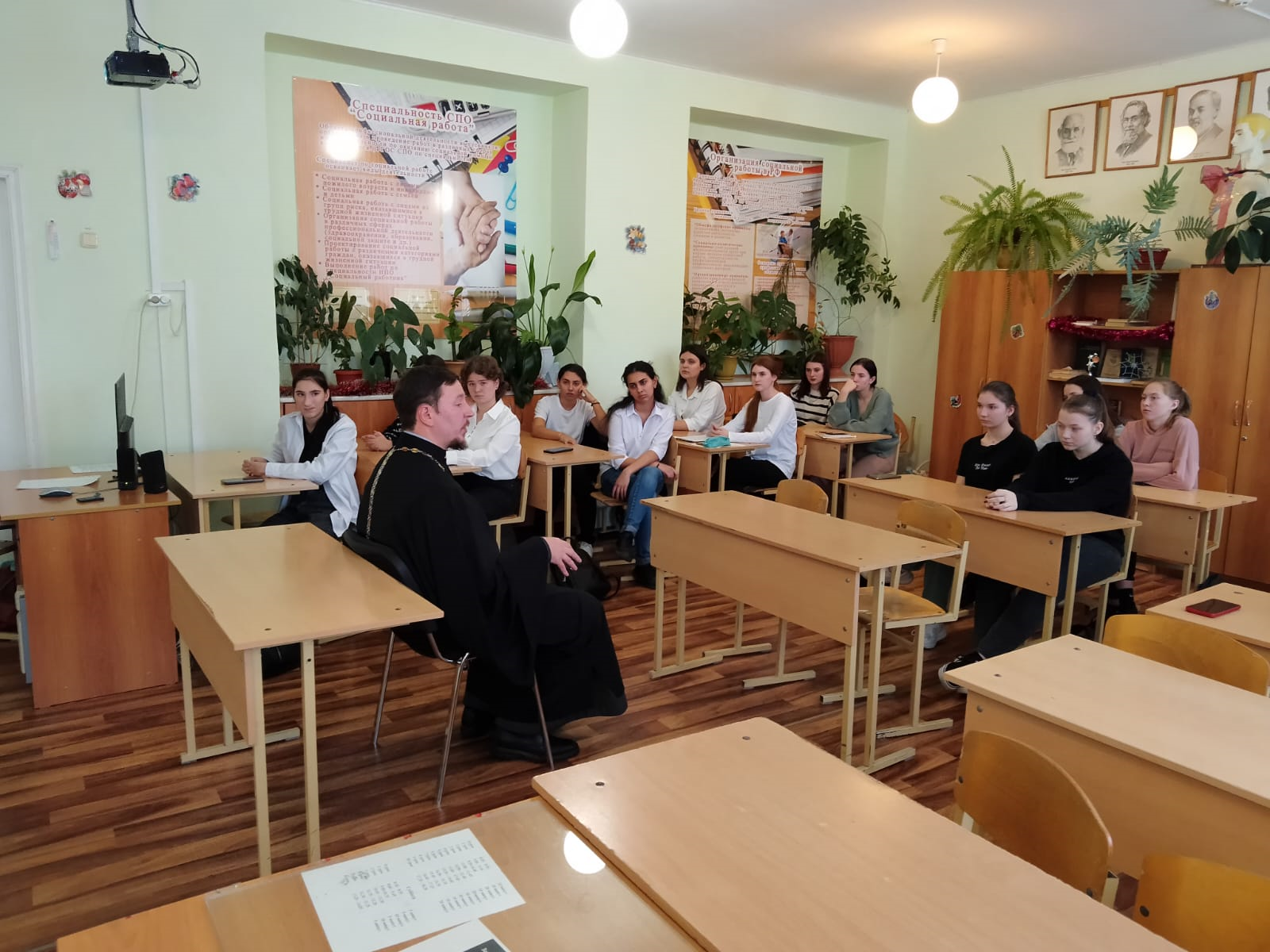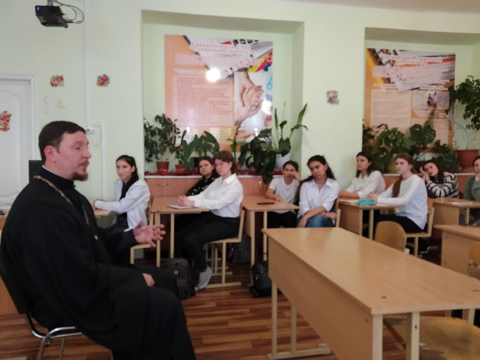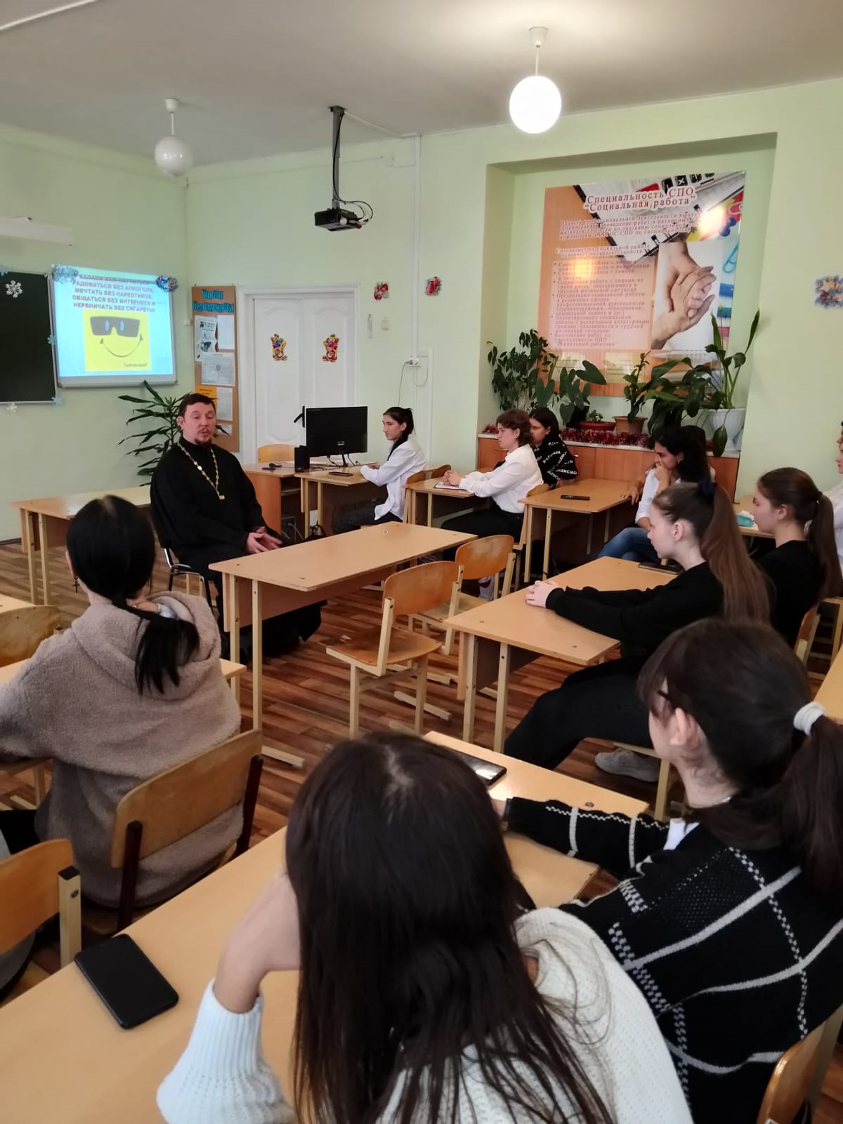15 декабря благочинный Верхнедонского округа иерей Роман Митяшин провел беседу с учащимися Вешенского педагогического колледжа им. М.А. Шолохова на тему: «Вредные привычки – оружие самоистребления».
