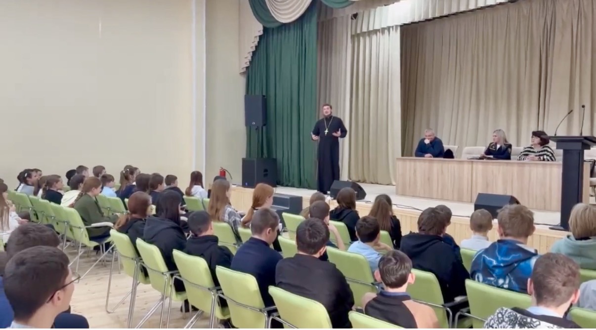 Встреча священника с учениками Боковской казачьей школы