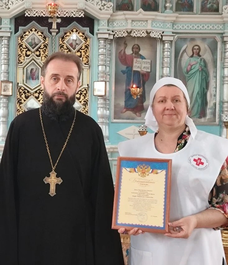 Настоятель храма Архистратига Михаила поселка Каменоломни, благочинный приходов Нижнедонского округа протоиерей Сергий Яценко, а также сестры милосердия Марфо-Мариинского сестричества удостоены Благодарственного письма председателя Ленинской районной Думы Волгоградской области Андрея Закеровича Ахметова.