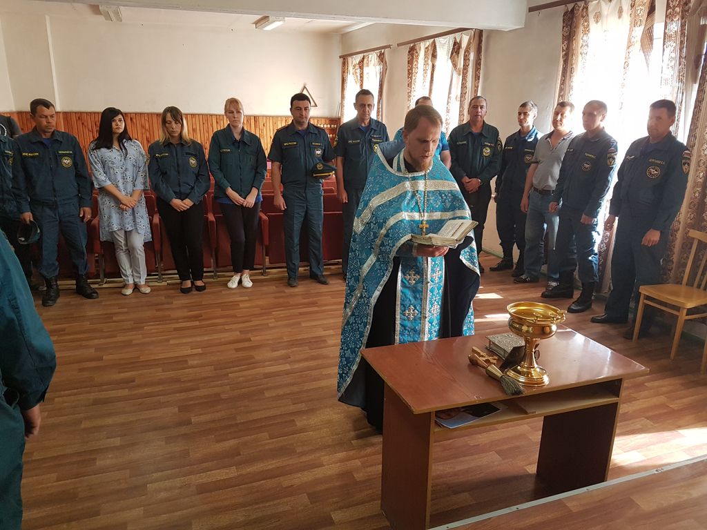 На молитвенном пении присутствовал весь личный состав пожарной части.