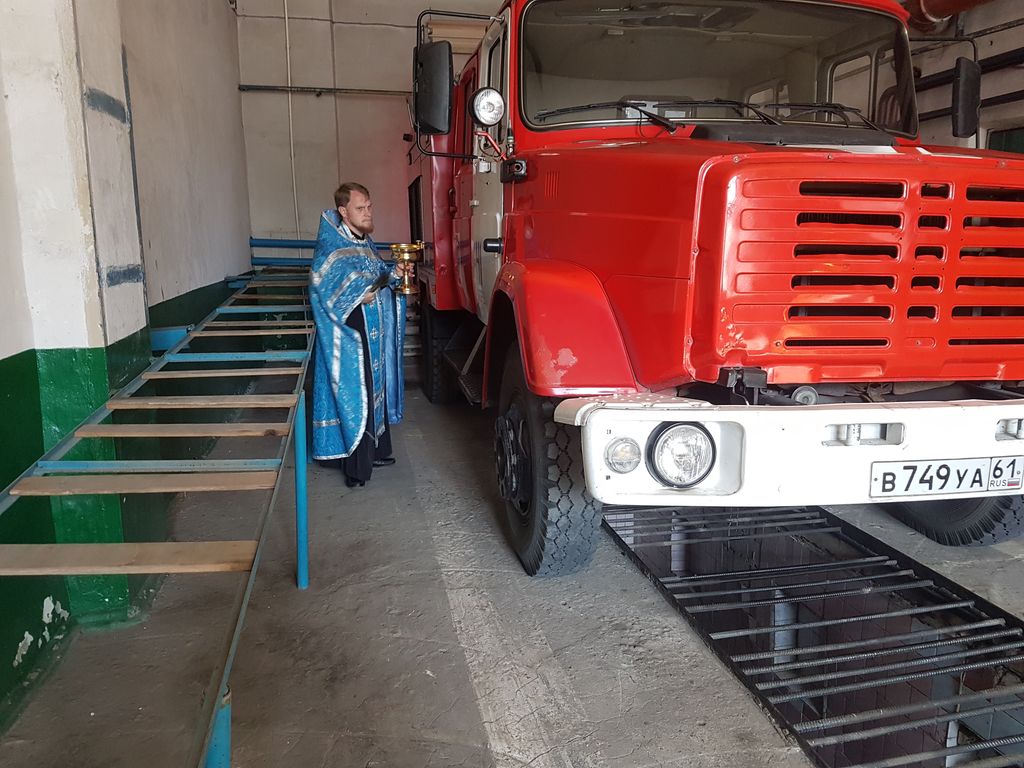 В день празднования иконы Божией Матери Неопалимая купина, по сложившейся традиции, в пожарной части № 41 г. Зверево благочинный Зверево-Никольского округа иерей Димитрий Дяур совершил водосвятный молебен.