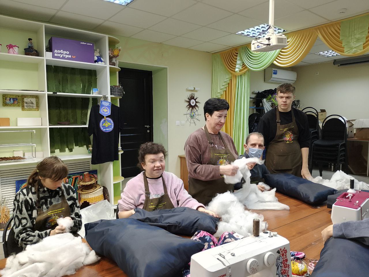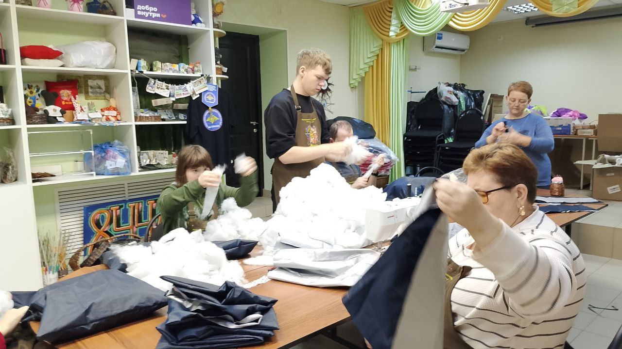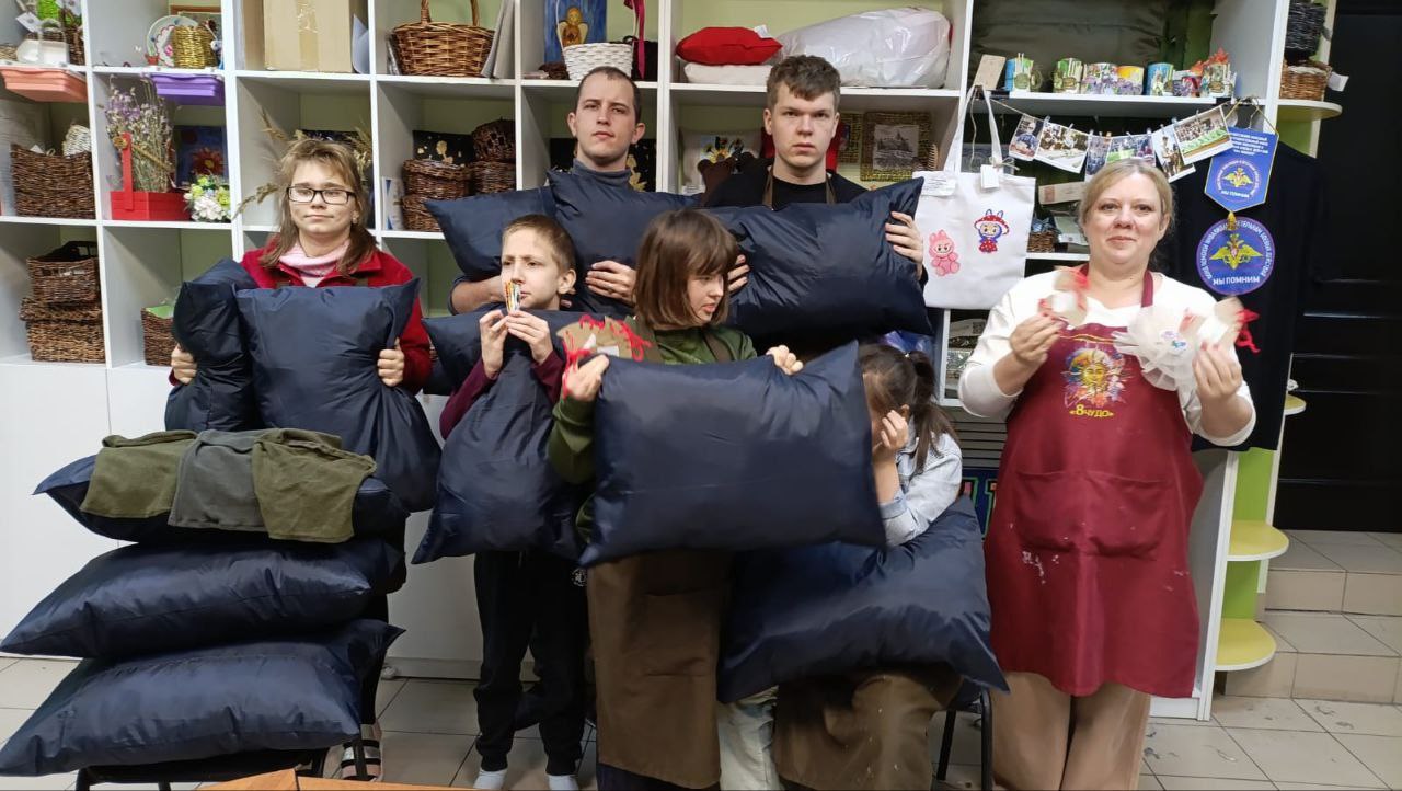 Добровольцы и дети мастерской «Волшебный стежок» передали военным балаклавы и подушки ручной работы