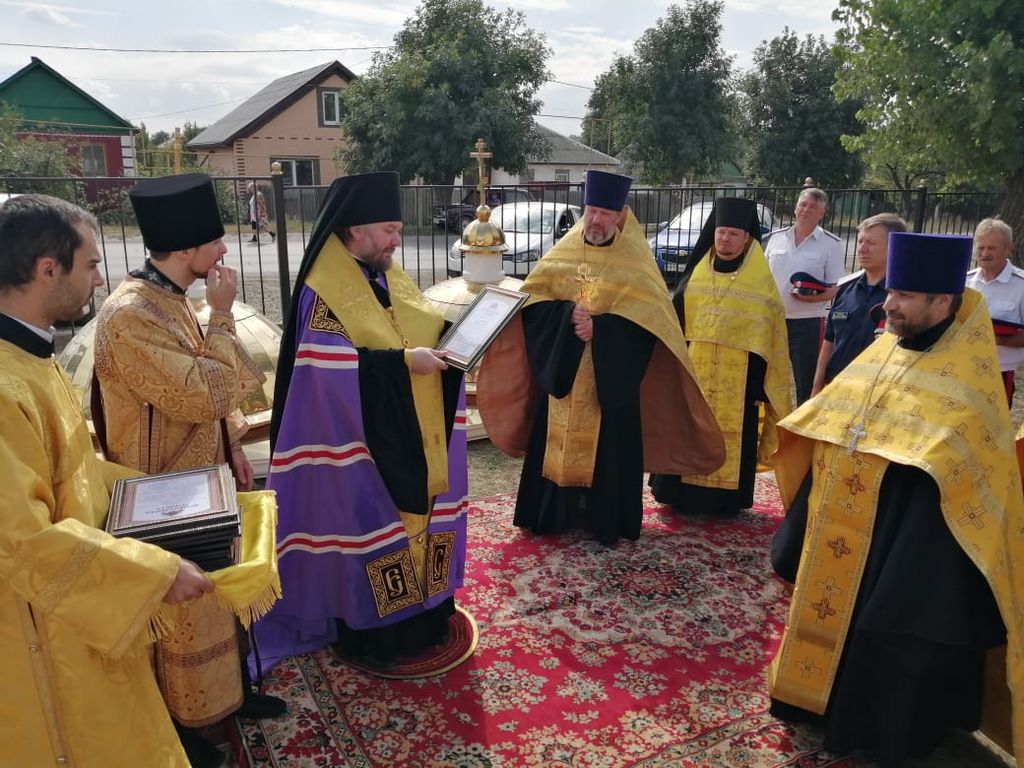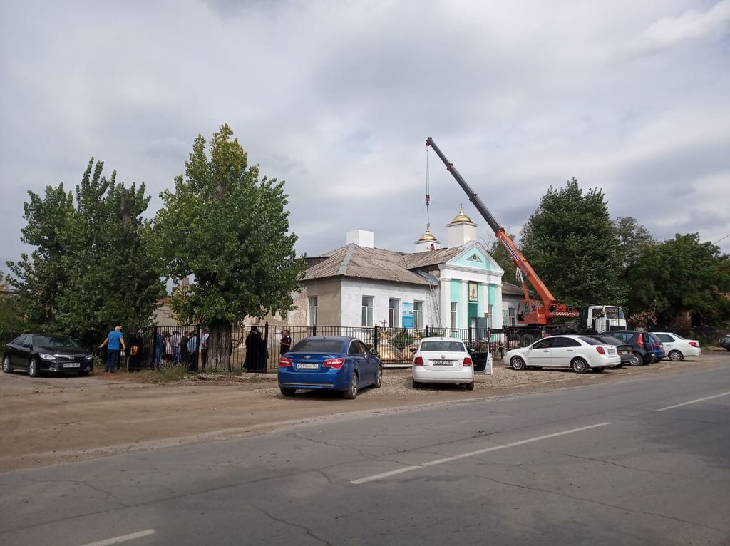 Епископ Шахтинский и Миллеровский Симон и духовенство Сулинского округа освятили купола храма в честь святого благоверного князя Александра Невского г. Красный Сулин