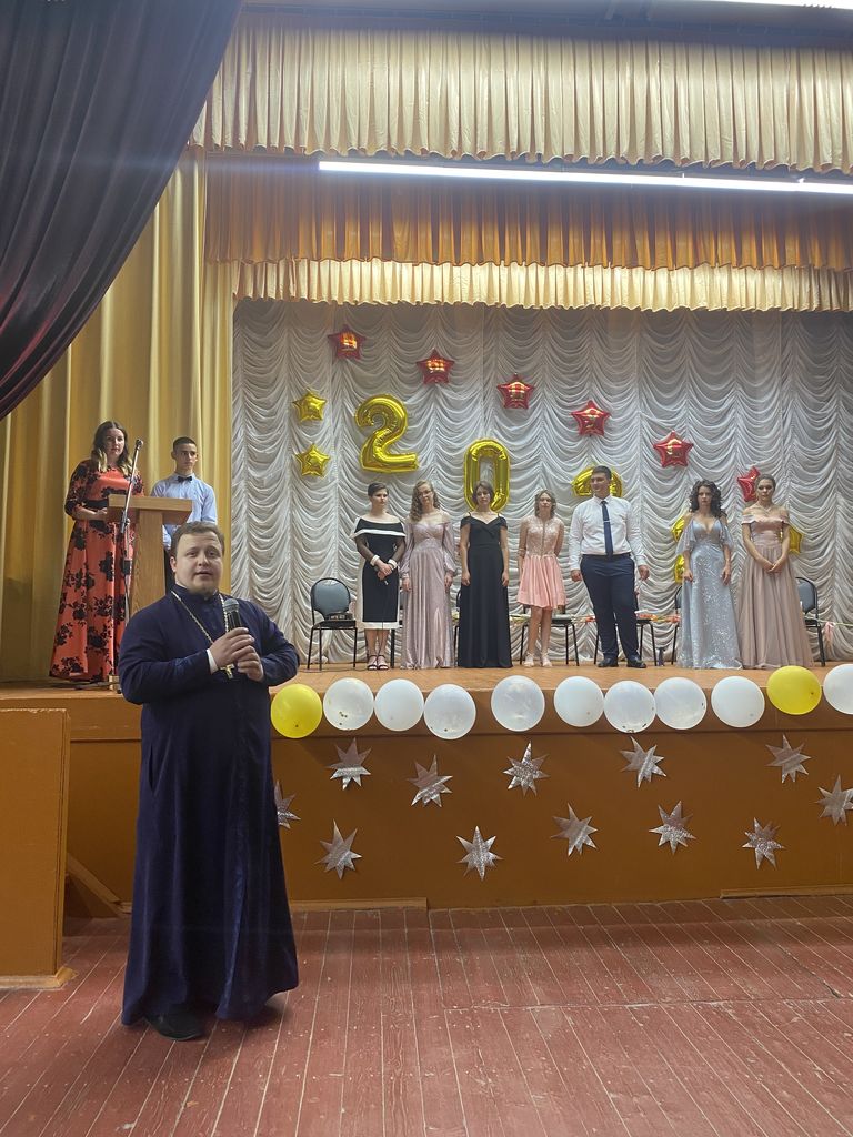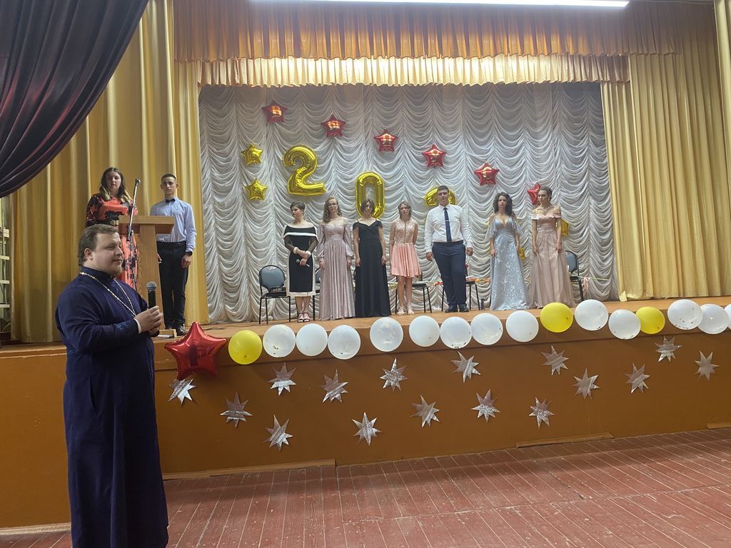 По приглашению директора станичной школы Юлии Борисовны Кулеминой настоятель Успенского храма станицы Калитвенской иерей Игорь Лосев принял участие в выпускном вечере.