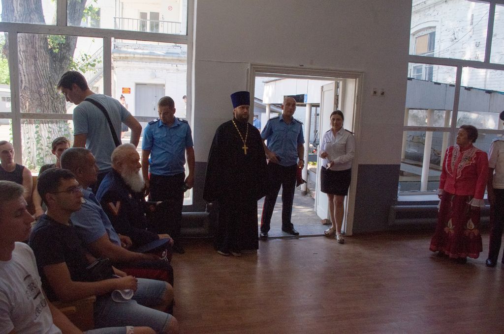 Духовник казаков городского казачьего общества г. Каменска-Шахтинского, настоятель храма Святой Анны Кашинской иерей Олег Выборов благословил юношей на службу.