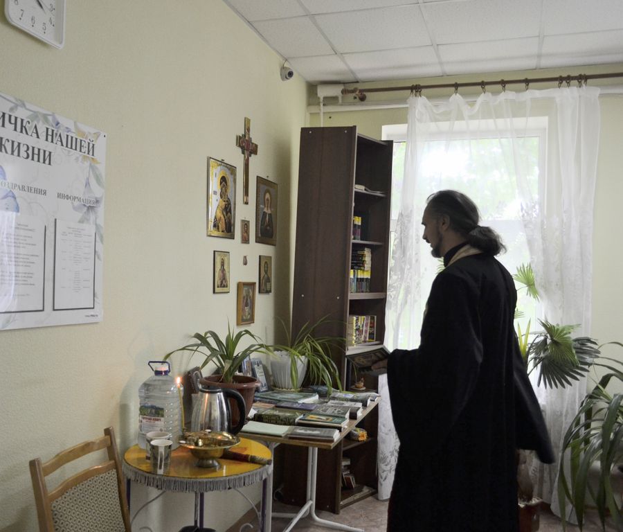 В отделении священнослужитель совершил молебен. По завершении богослужения иеромонах Серафим рассказал присутствующим о жизни преподобного Сергия Радонежского и пообщался с пожилыми людьми.