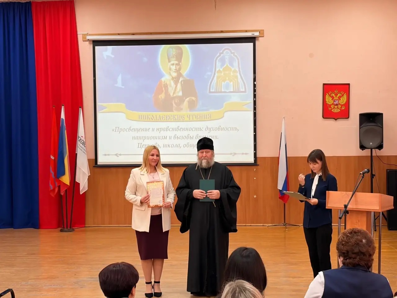 Пленарное заседание открыла заведующий Отделом образования Администрации Обливского района Нина Малахова, которая приветствовала участников форума и подчеркнула, что в условиях быстрых перемен особенно важно задуматься о том, что придаёт смысл нашей жизни: доброта и ответственность, уважение и милосердие, любовь к ближнему и к своей Родине. Она вручила Благодарственные письма педагогам образовательных организаций Обливского района за значительный вклад в духовно-нравственное и патриотическое воспитание подрастающего поколения.