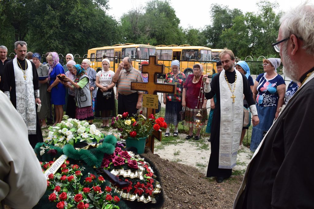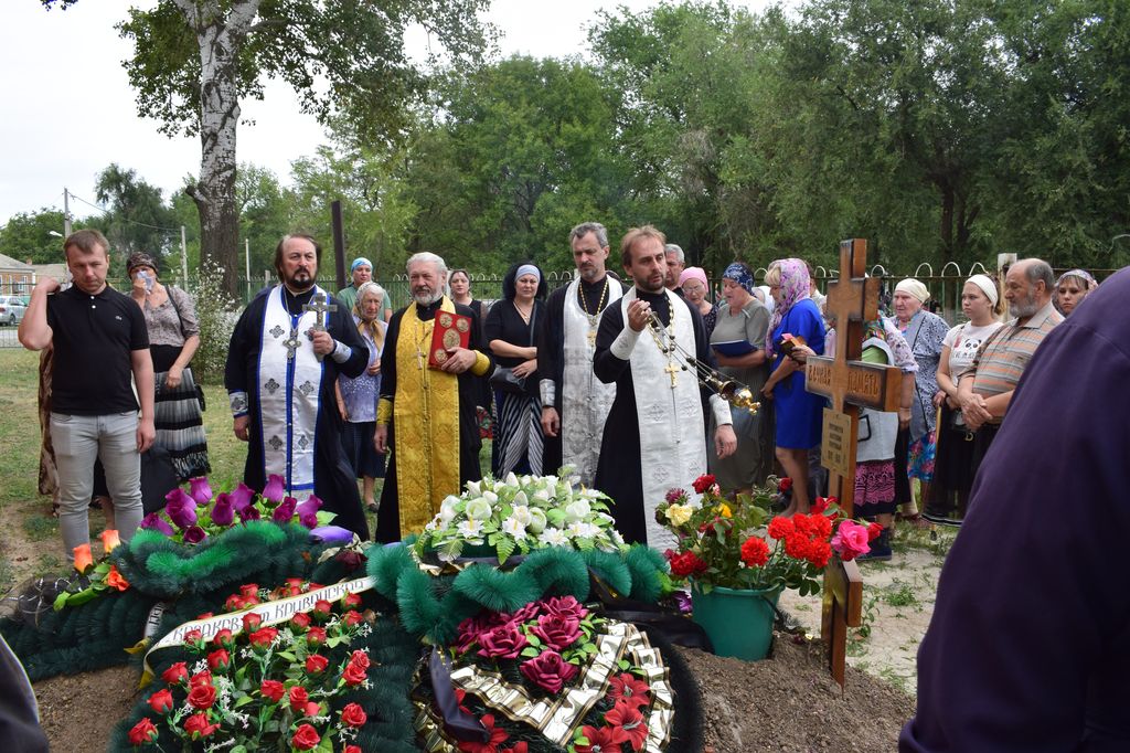 Божественную Литургию возглавил благочинный приходов Нижнедонского округа протоиерей Сергий Яценко. После совместной молитвы на месте погребения состоялась панихида, после которой, протоиерей Сергий обратился к молящимся с пастырским словом.